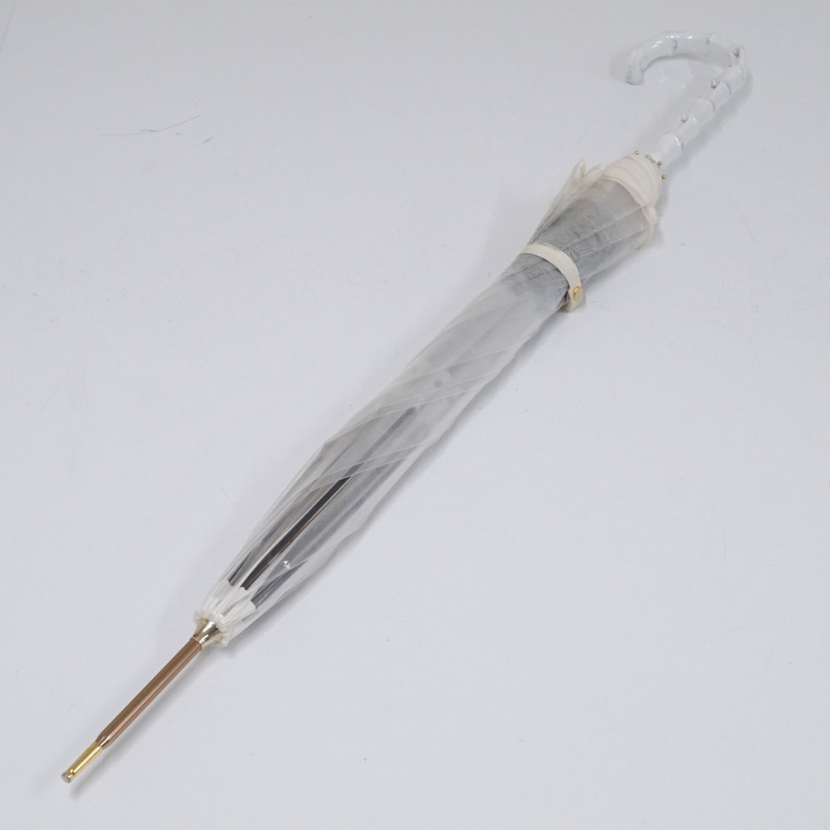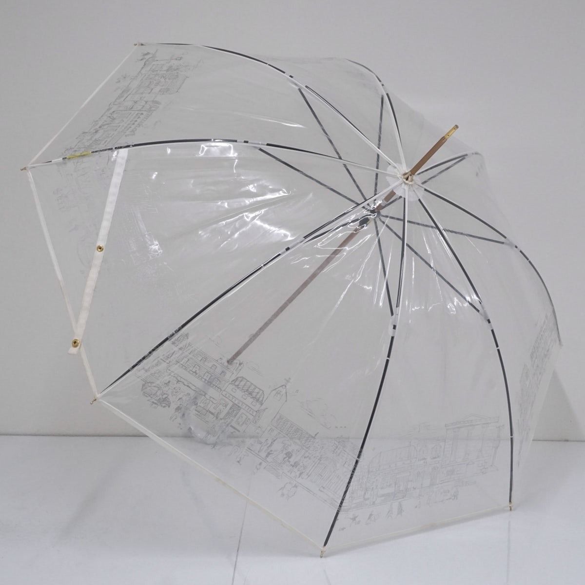 高級ビニール傘 HANWAY ハンウェイ USED美品 ホワイト パイピング 街並み 55cm S1992