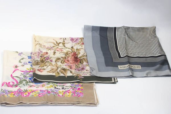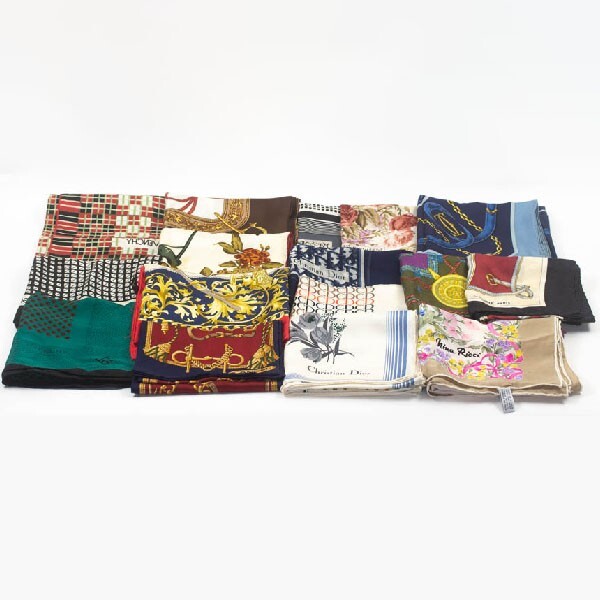 【中古】ブランドスカーフまとめて CELINE LANCEL NINA RICCI YSL Dior ジバンシー 他 訳アリ 16枚セット #19470