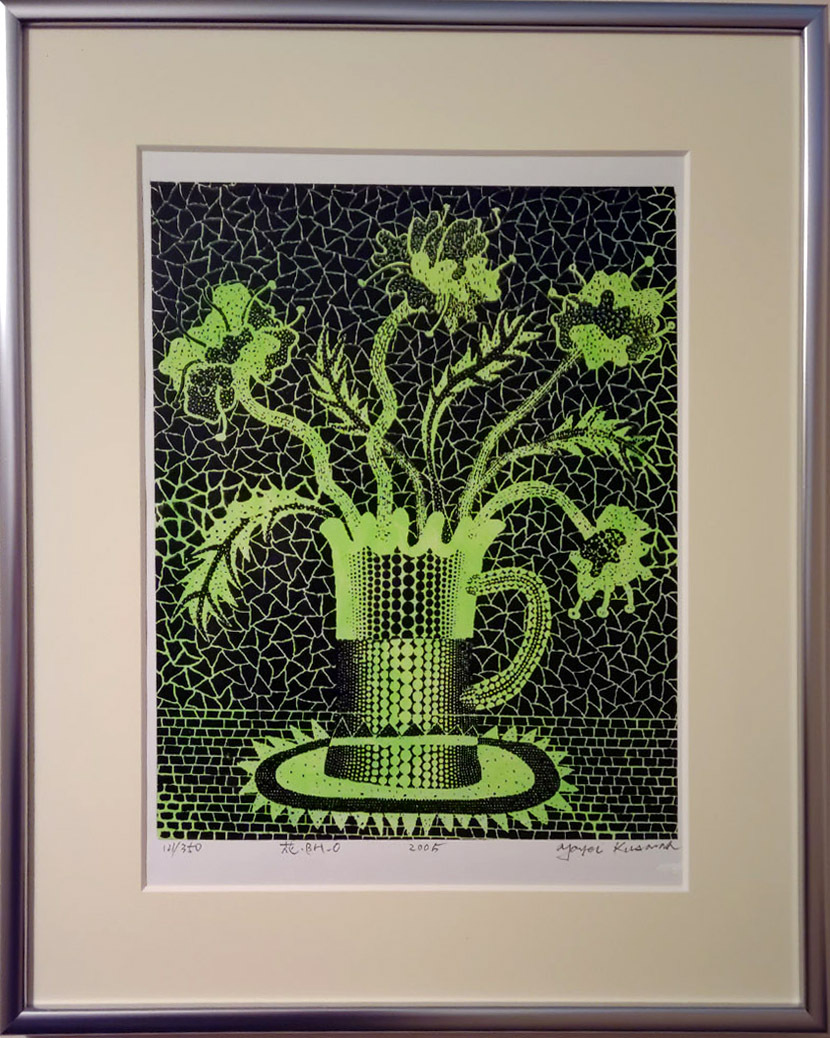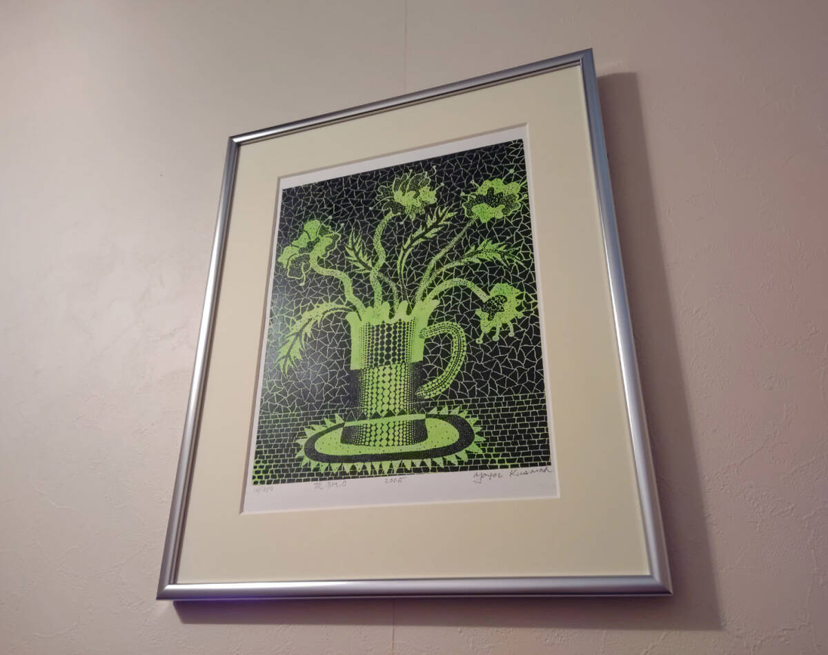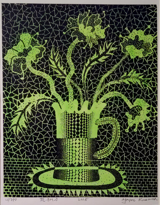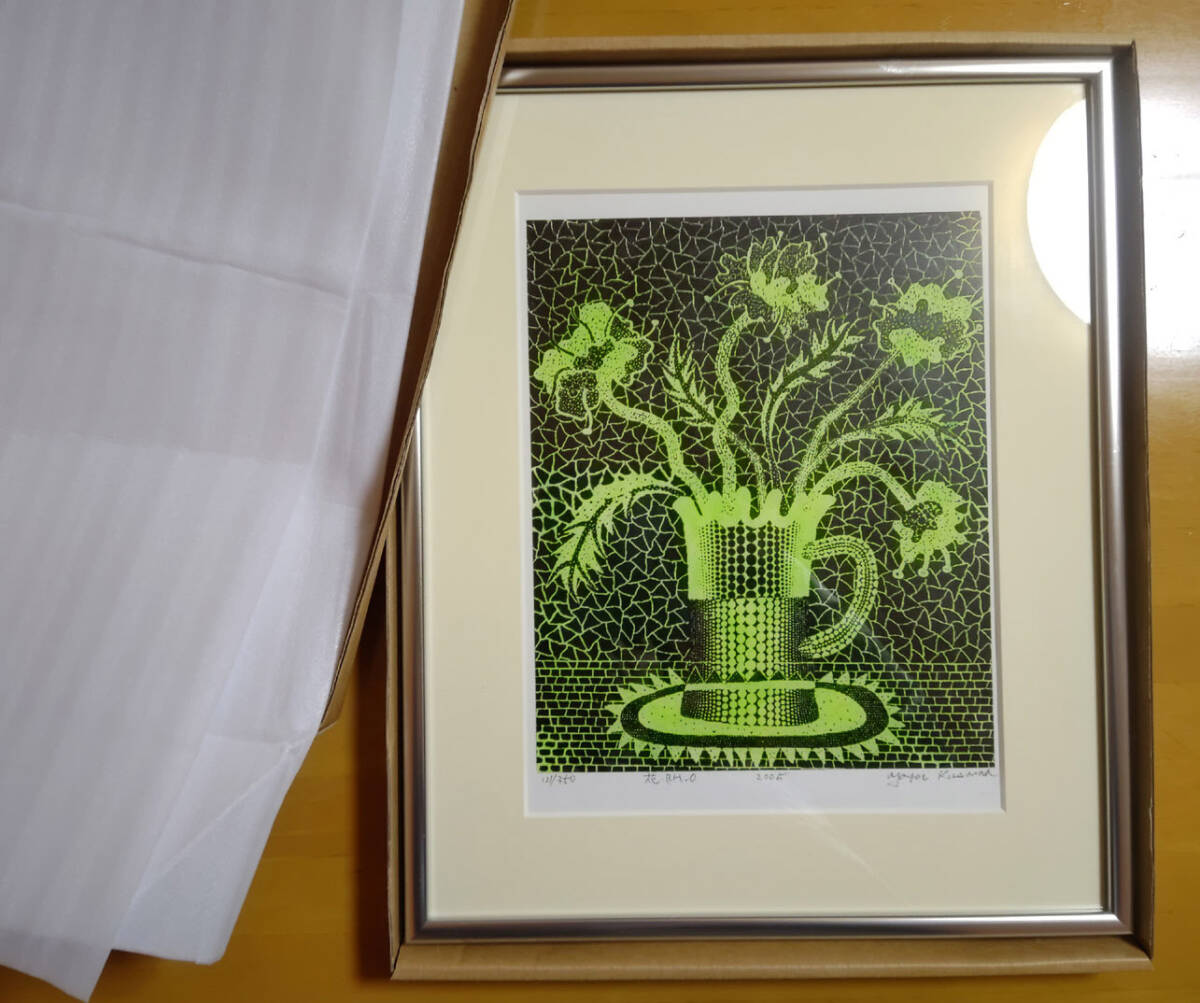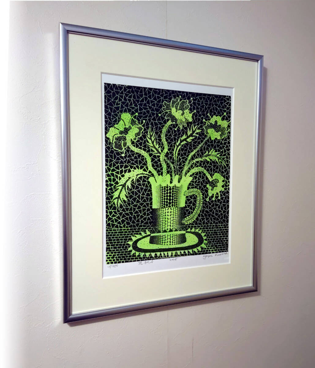 絵画/シルク/版画/草間彌生/模写/花・BHー0 2005/サイン有/シルクスクリーン/アルミ額縁付/検索:草間彌生/匿名配送