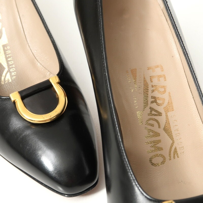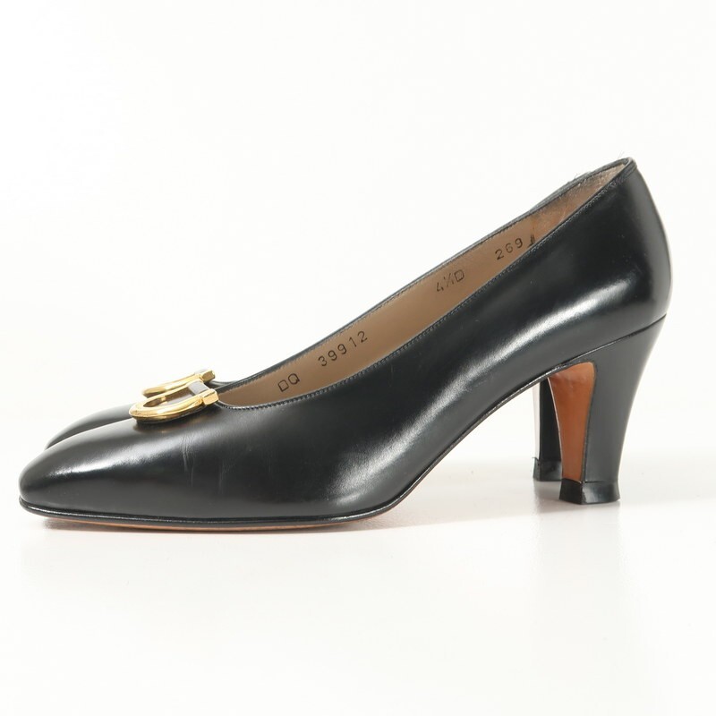 GS3765*イタリア製 サルヴァトーレフェラガモ ガンチーニ レザーパンプス スクエアトゥ 4.5D(21.5cm相当) 靴 ブラック