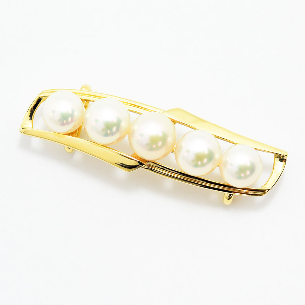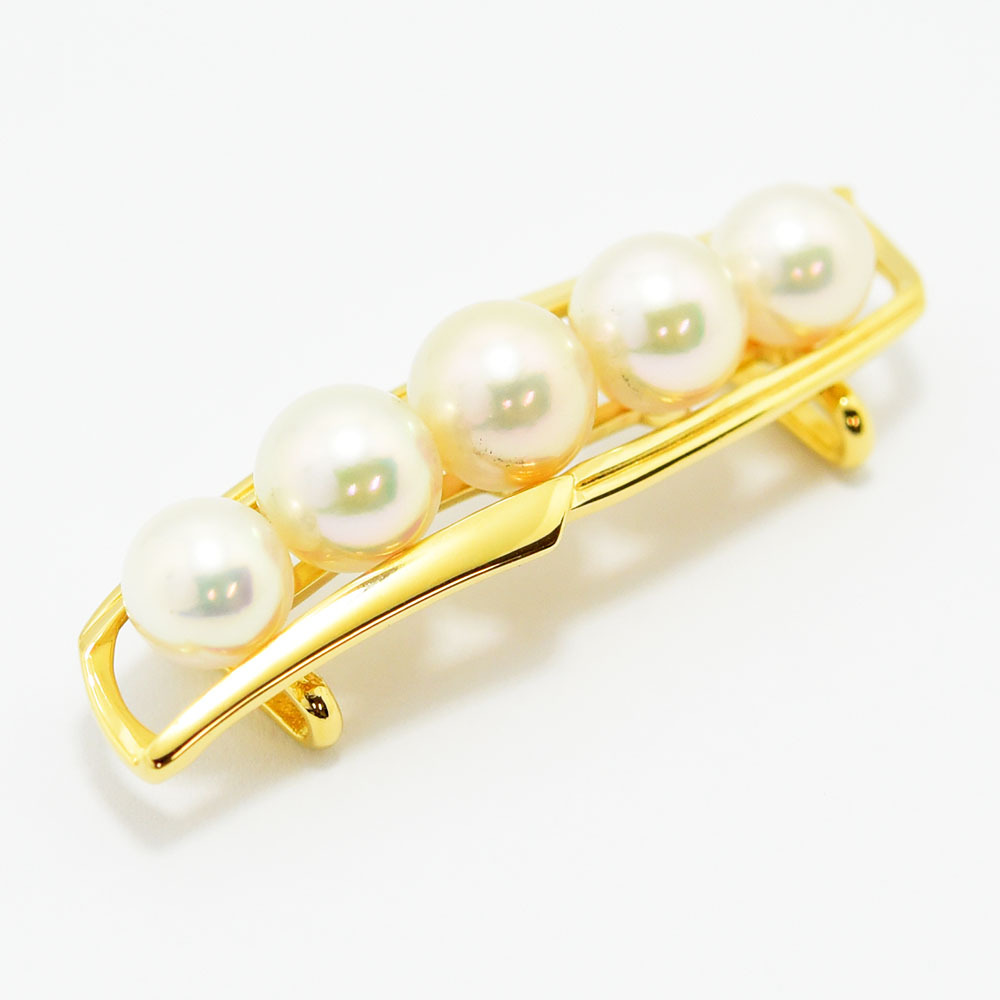 ミキモト 帯留め MIKIMOTO 真珠 パール 6.7~7.5mm K14 新品仕上げ 中古