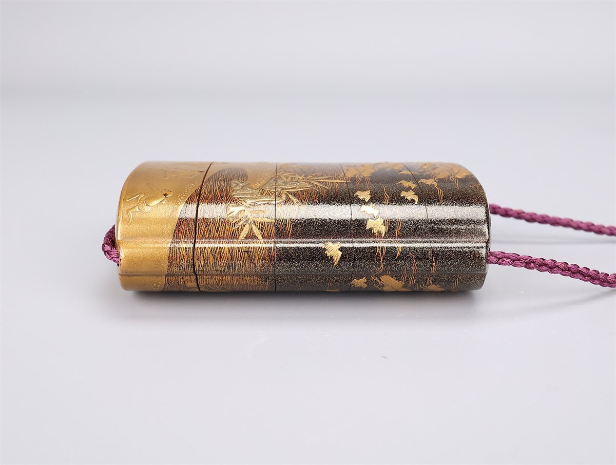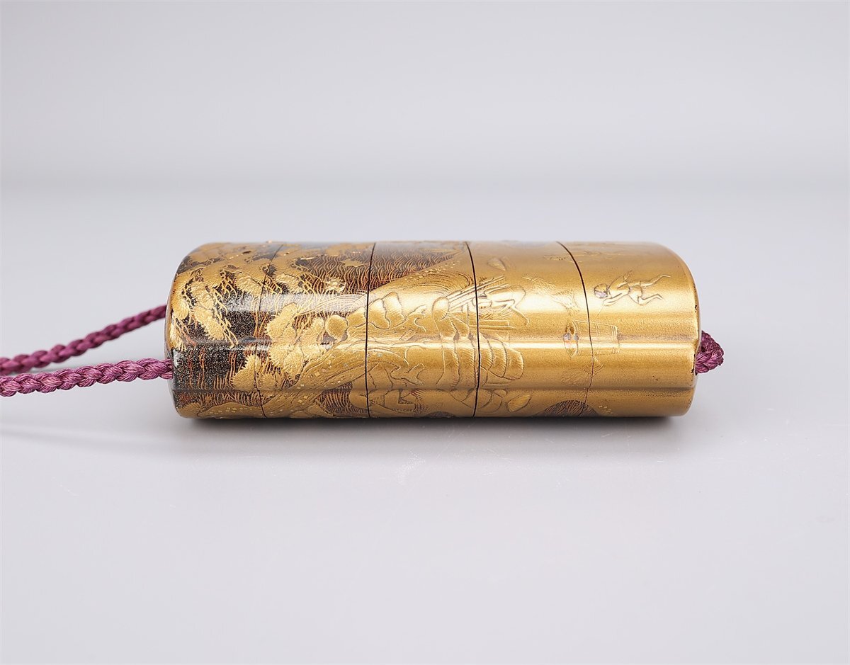 【吉】ZD102 江戸時代 極上金彩蒔絵 山水花鳥人物紋 5段 印籠/美品H!