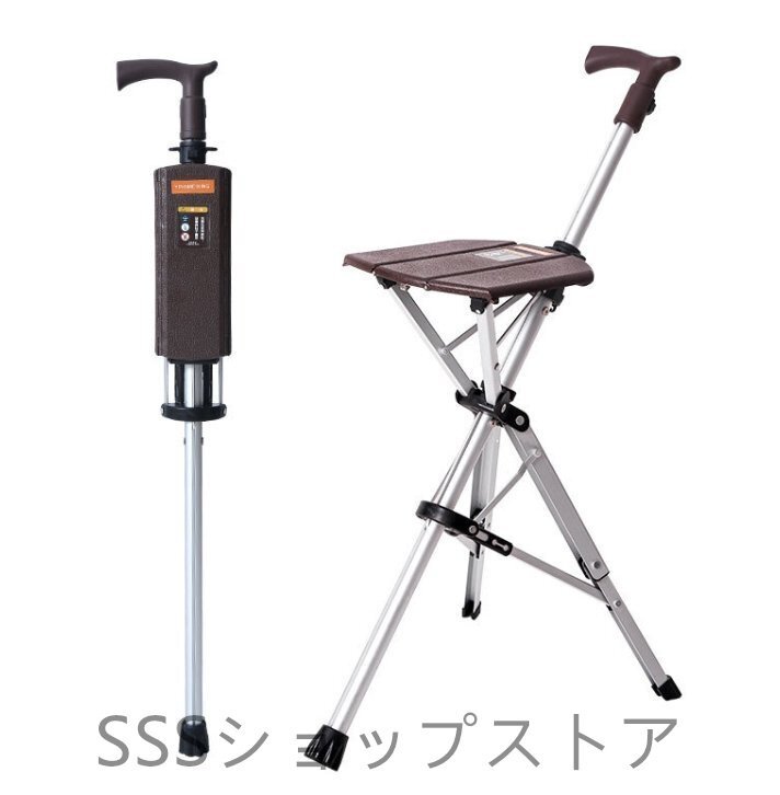 高齢者用杖腰掛け両用杖腰掛け付き腰掛け椅子携帯電動ワンタッチ開閉折りたたみ杖椅子