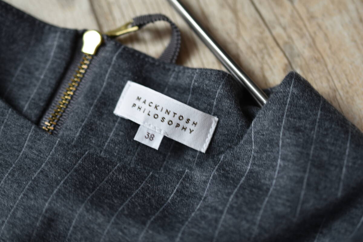 マッキントッシュフィロソフィー MACKINTOSH PHILOSOPHY ストライプ柄ドロップショルダープルオーバー サイズ38 グレー色