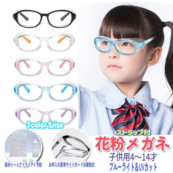 送料無料 子供用 うるおう保水シート 花粉予防メガネ 4才~14才 ドライアイ PC ブルーライト 花粉症メガネ 花粉対策 紫外線 眼鏡 スギ花粉