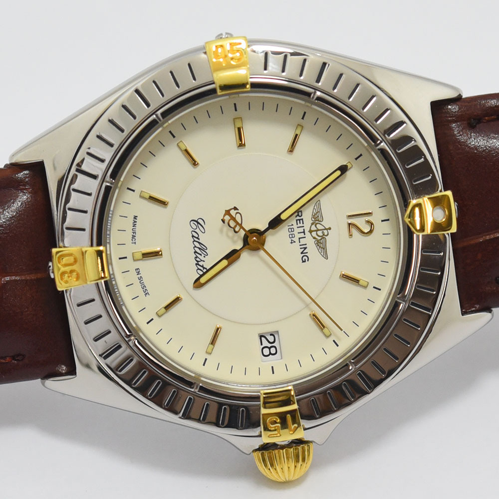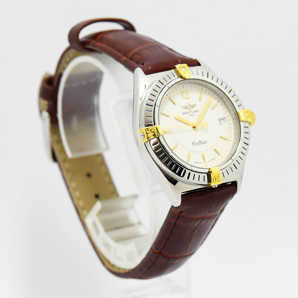 ブライトリング 中古 メンズ BREITLING カリスト B57045 クォーツ SS ステンレス 新品社外レザー ホワイト 軽仕上げ