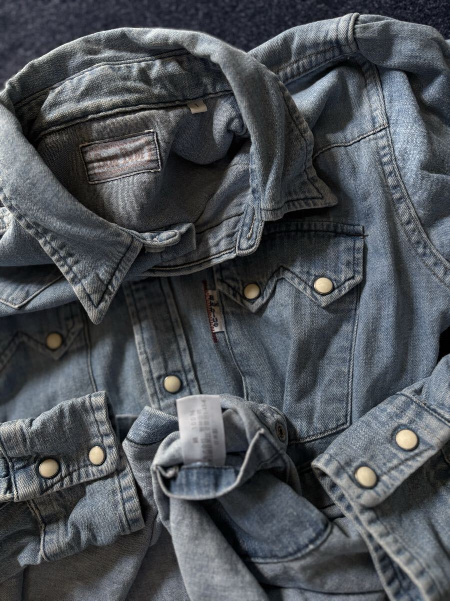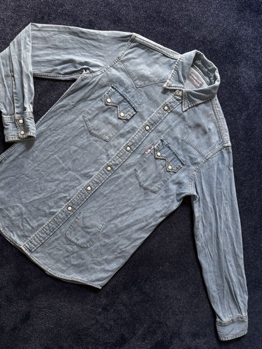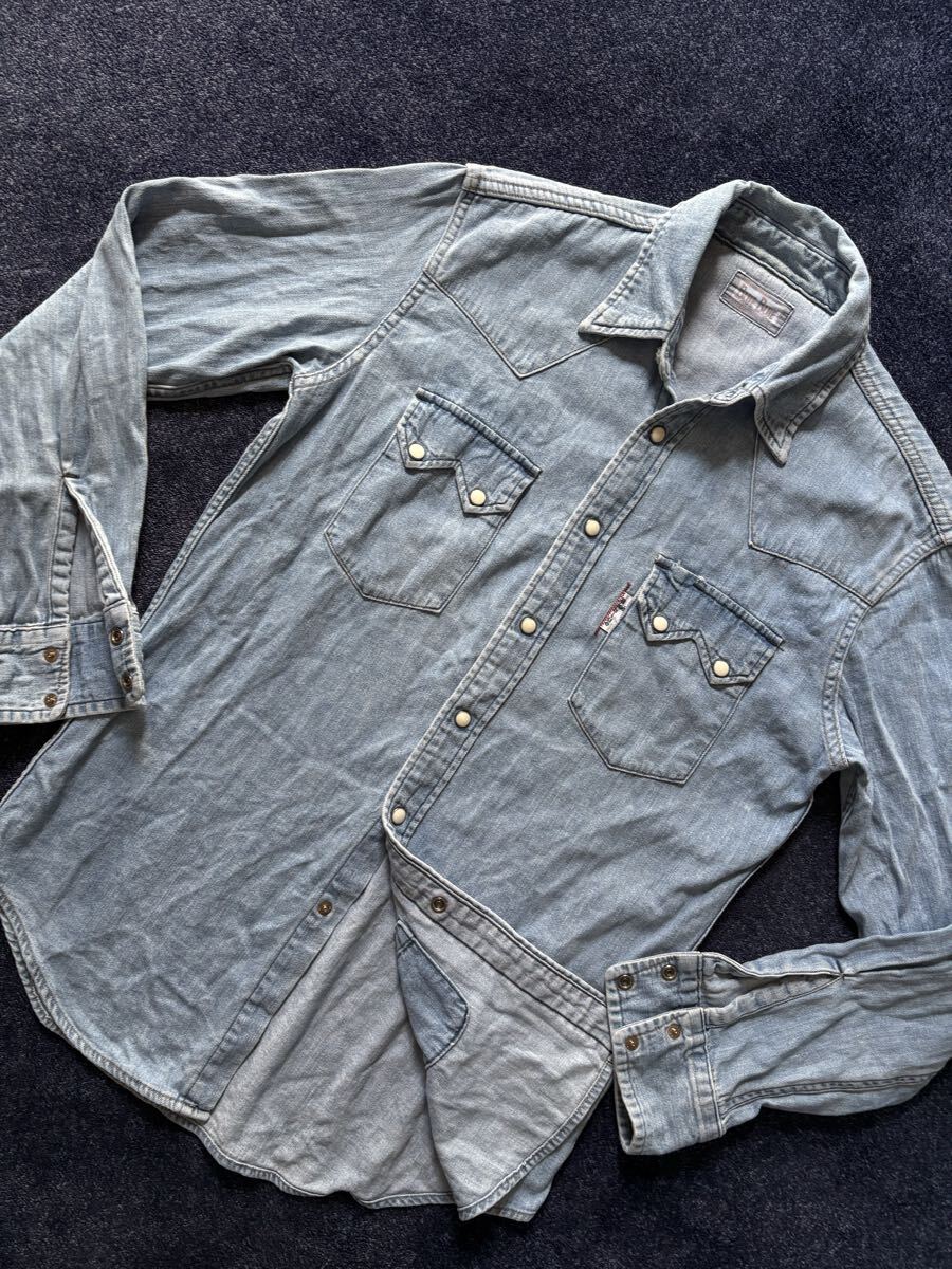超美品 日本製 ハリウッドランチマーケット HRM ブルーブルー BLUE BLUE 高品質デニム ウエスタンシャツ ライトブルー系 size1(S)