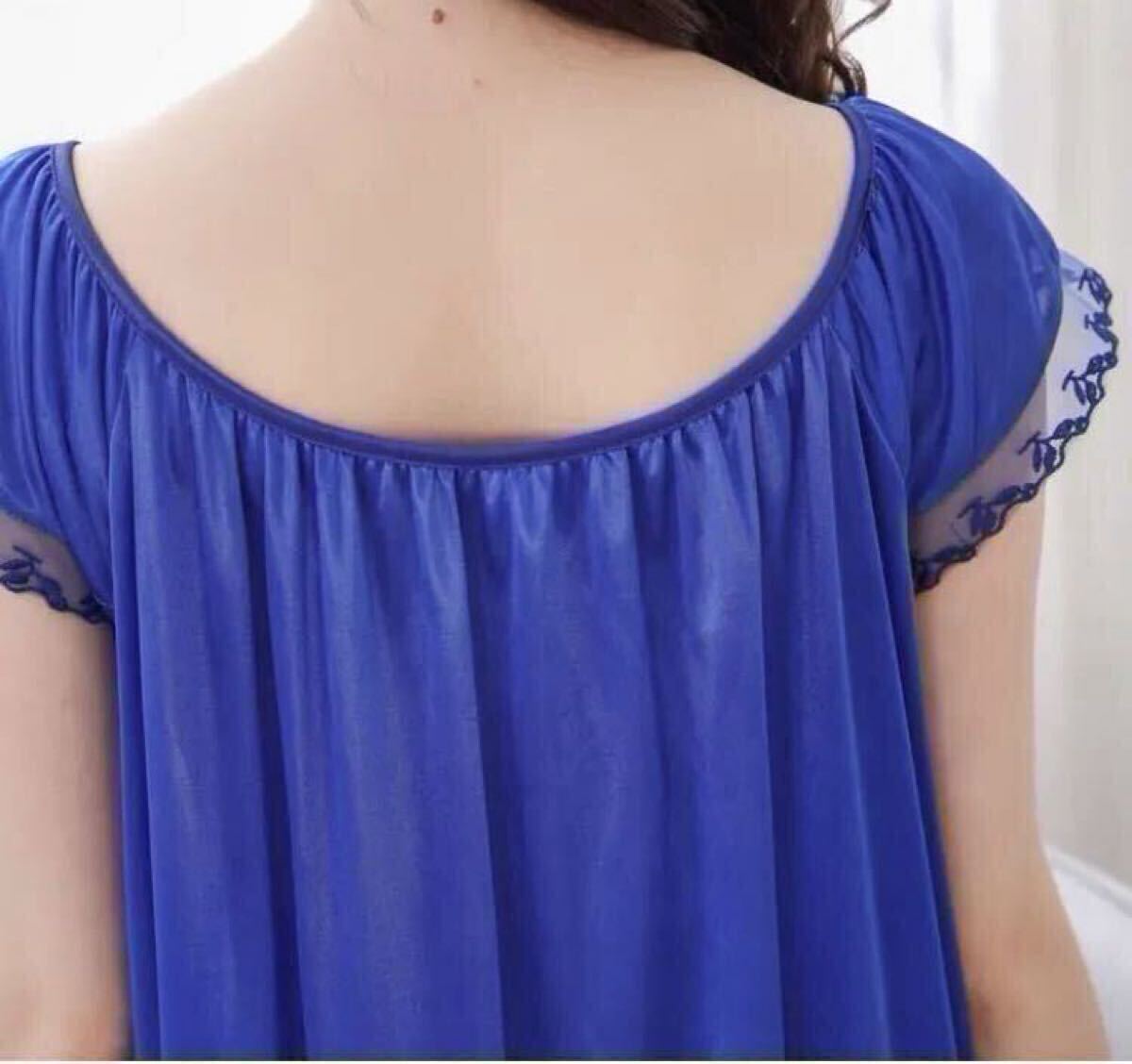 濃い パープル 紫 パジャマ ルームウェア 6L 5XL ナイトウェア ワンピース サテン シルクタッチ ワンピース レディース 半袖 レース