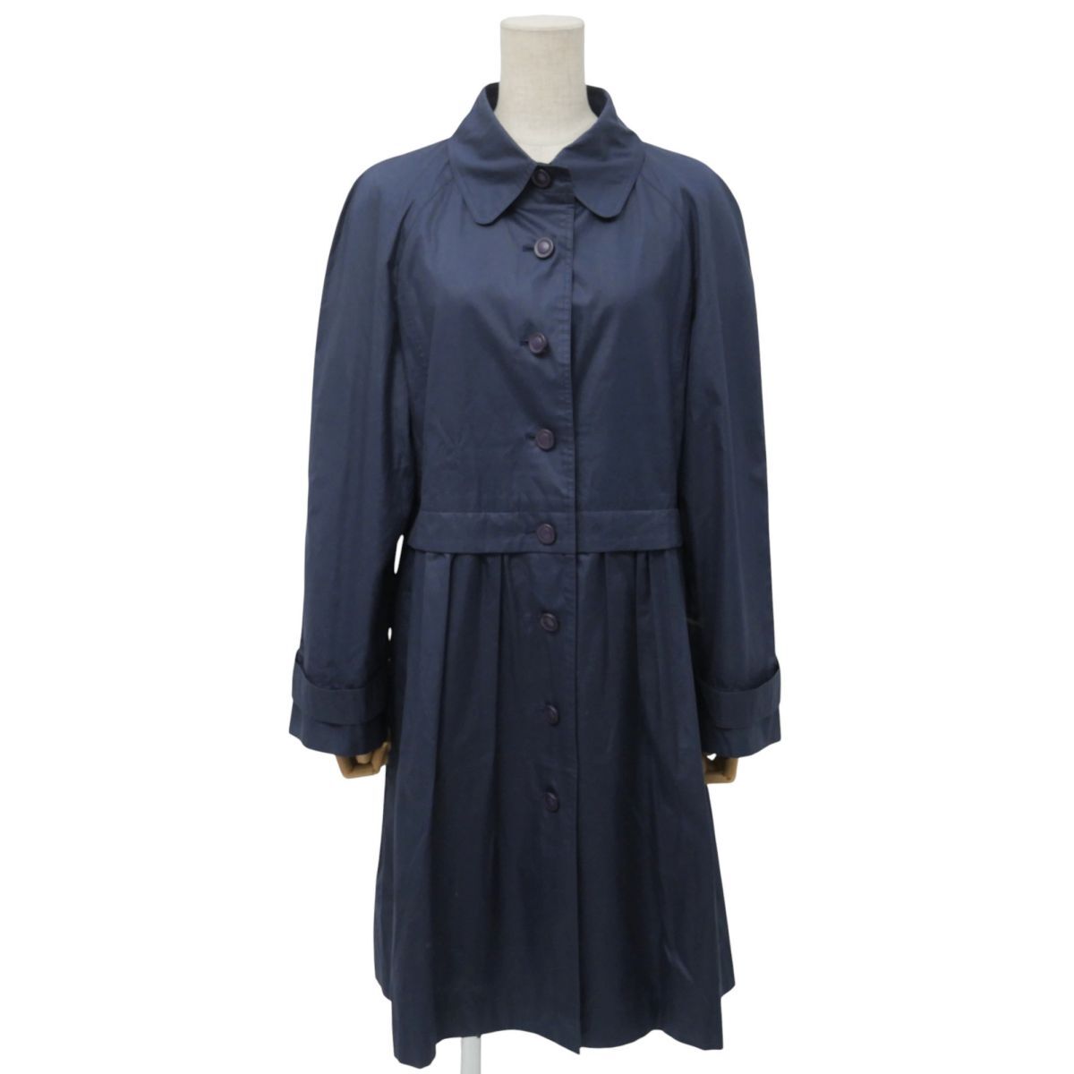 GS4526☆マドモアゼル ディオール Mademoiselle Dior ステンカラー ハーフコート フレアコート コットン 薄手 ネイビー Mサイズ
