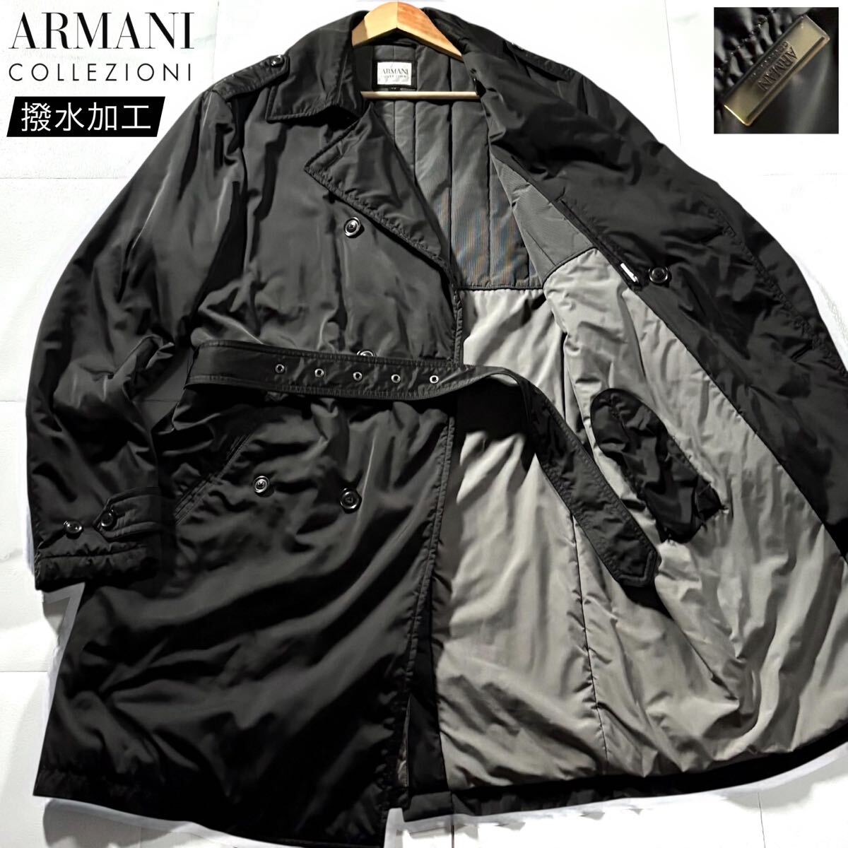 極美品/XXLサイズ●ARMANI COLLEZIONI アルマーニ コレツィオーニ ナイロン 中綿 トレンチコート ロゴタグ 撥水加工 洗濯可◎ 黒 3L 52