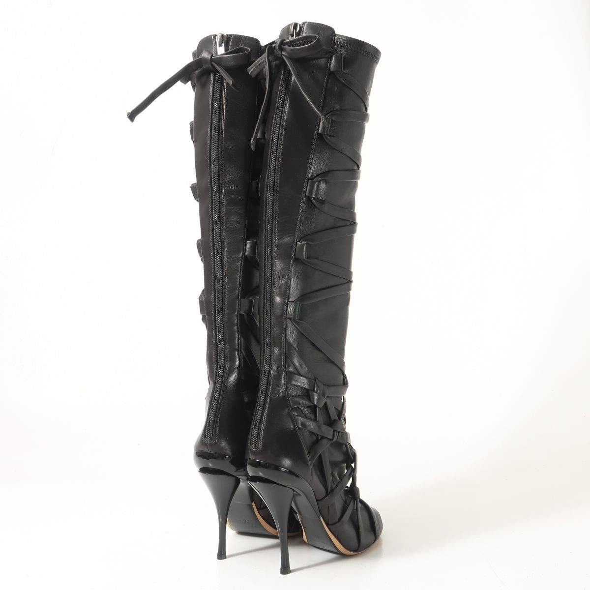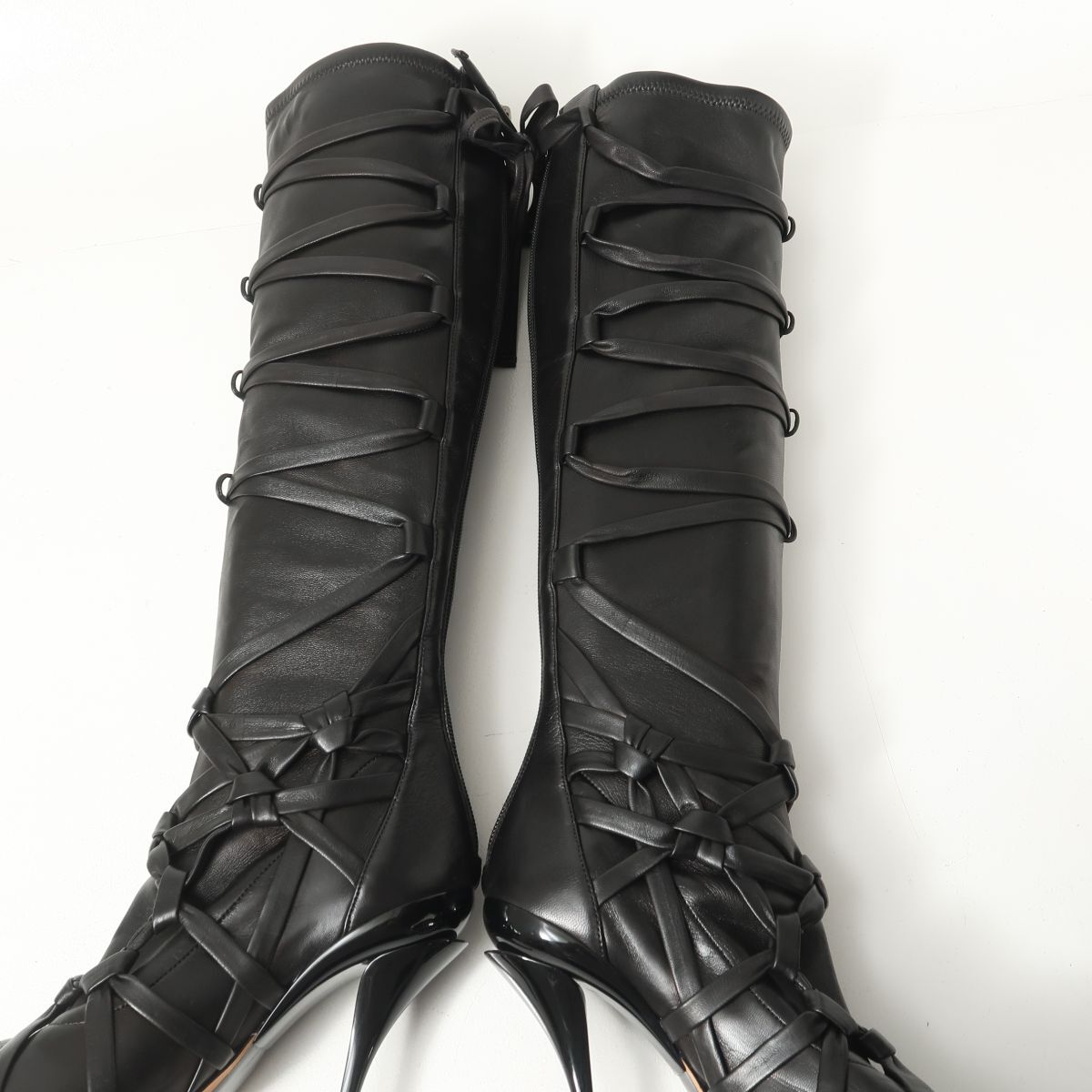 GS0159▲未使用 伊製 ジミーチュウ ANNELI アネッリ ラップアラウンドストラップ レザー ニーハイブーツ ロング オープントゥ 36.5 靴