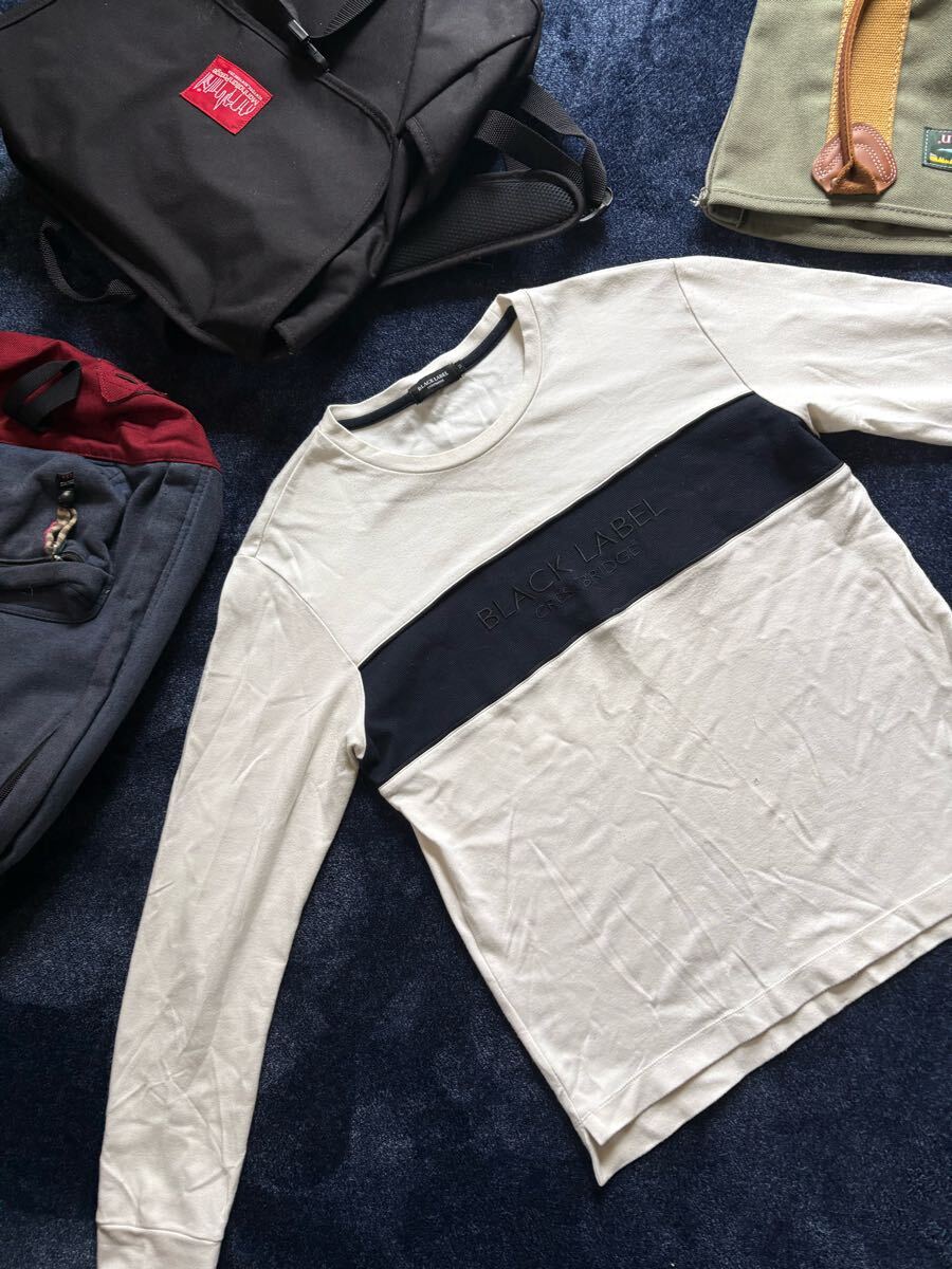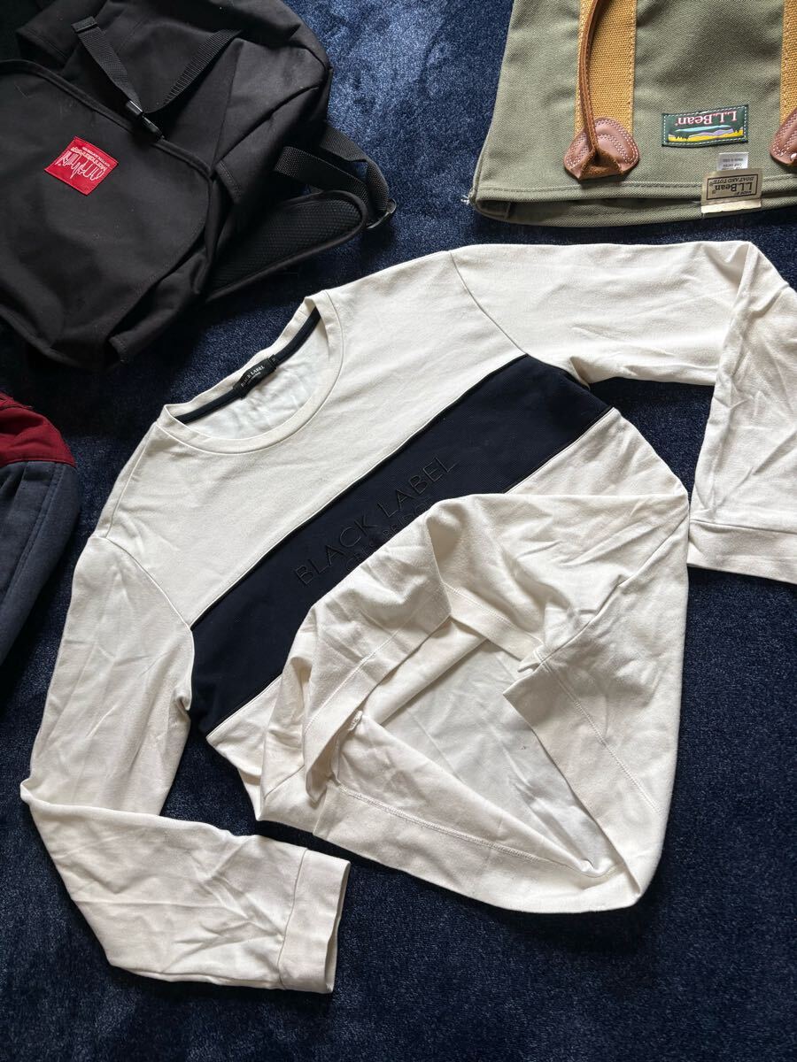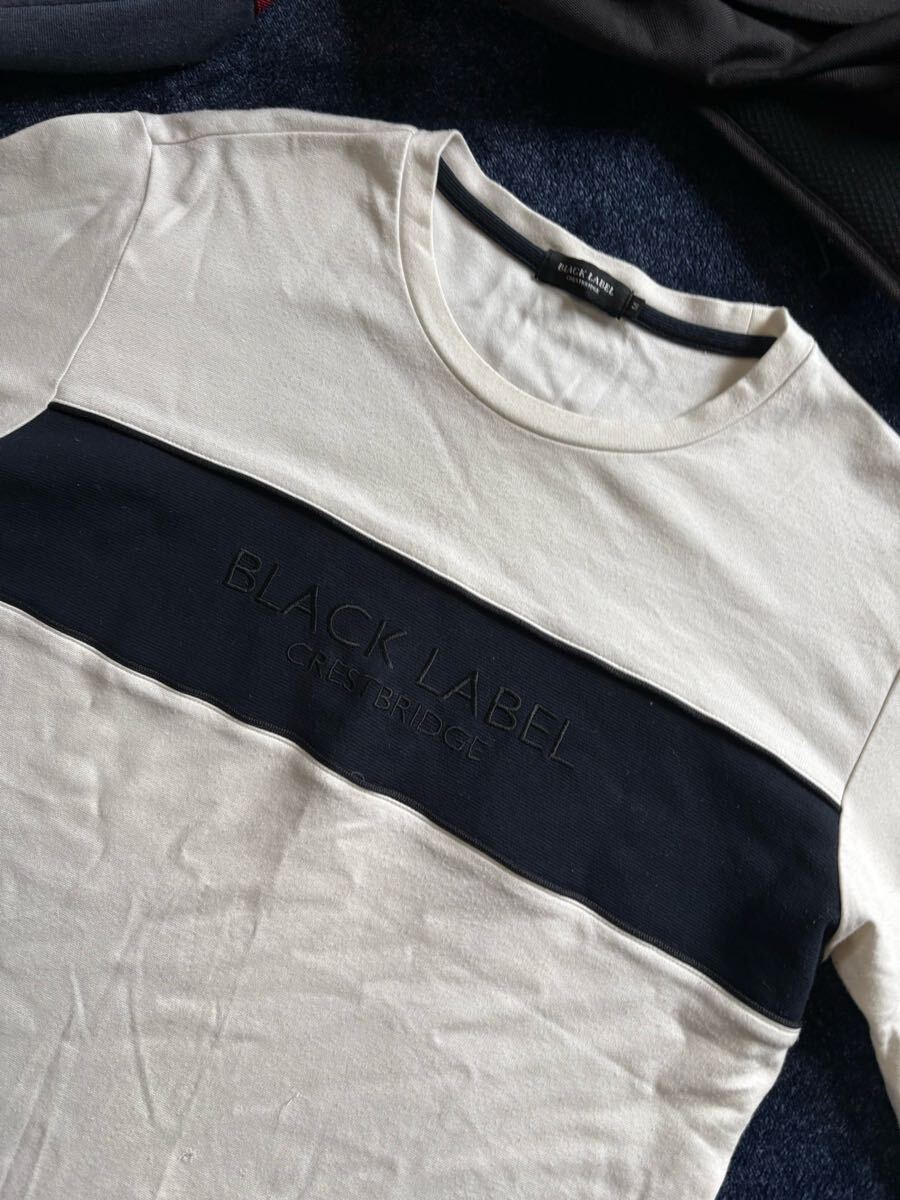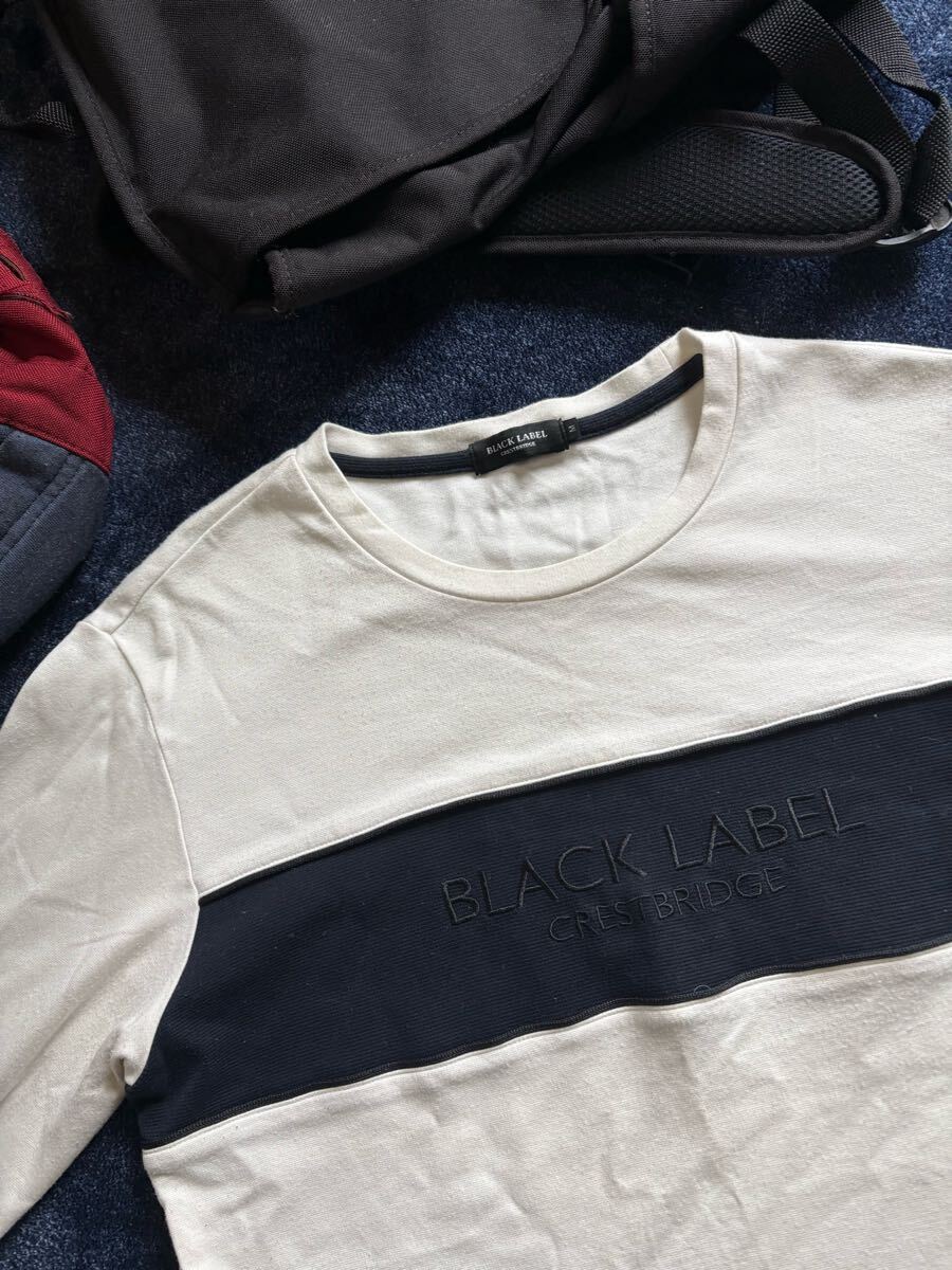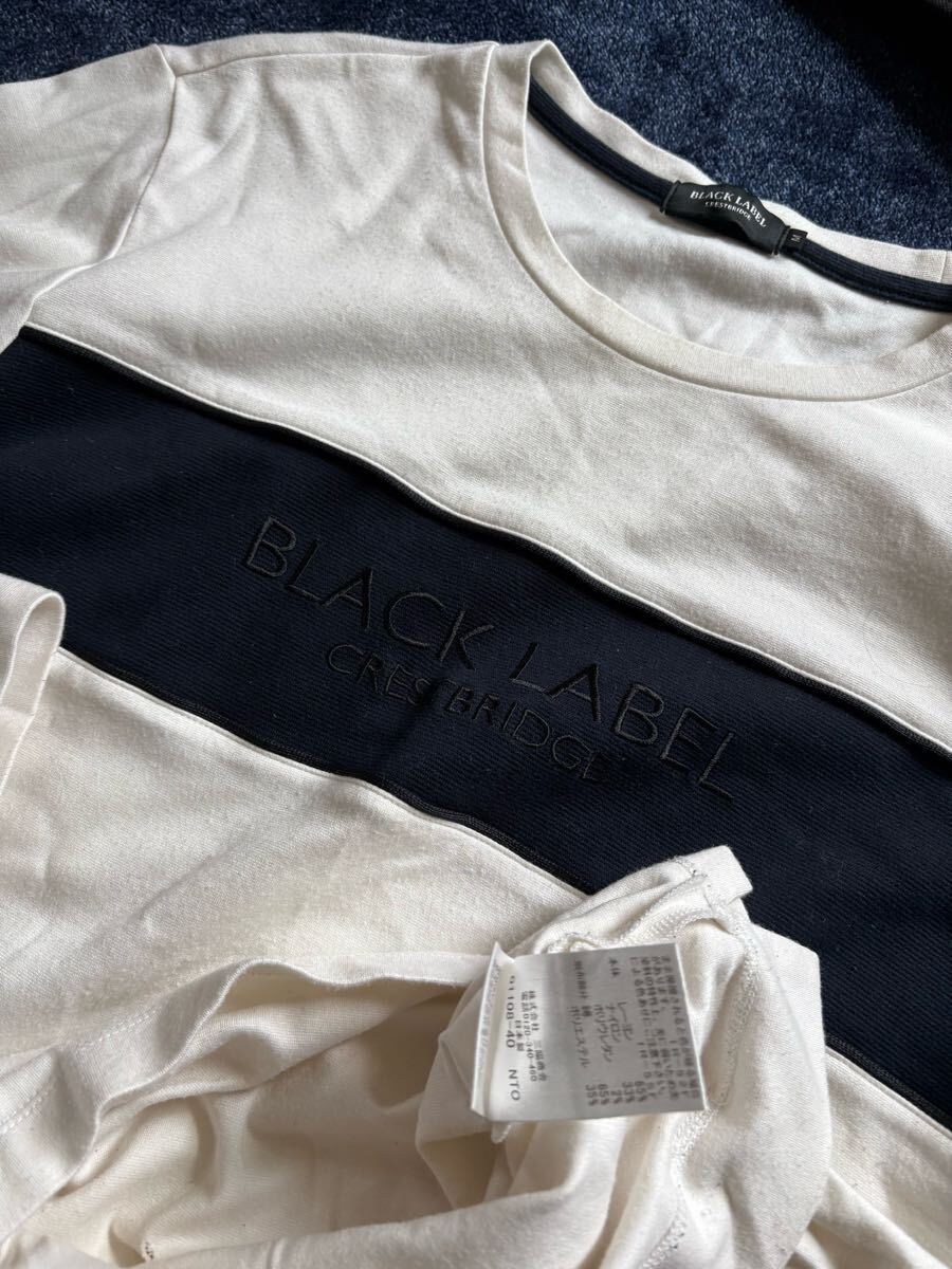 人気 定価18,700円 BLACK LABEL CRESTBRIDGE クレストブリッジ ロゴ刺繍 高品質ストレッチ素材 クルーネック 長袖シャツ sizeM ホワイト系
