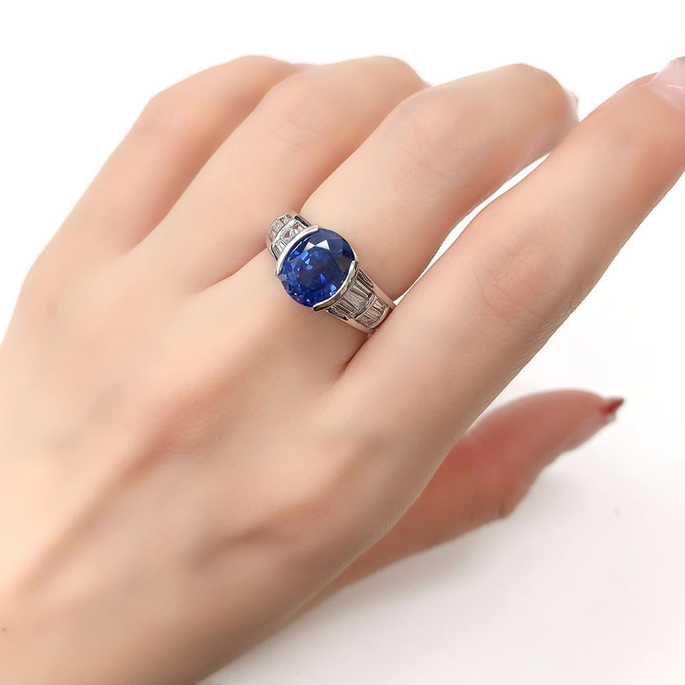 サファイア 4.796 ダイヤモンド 0.71 リング PT900 約12.5号 新品磨き仕上げ 中古