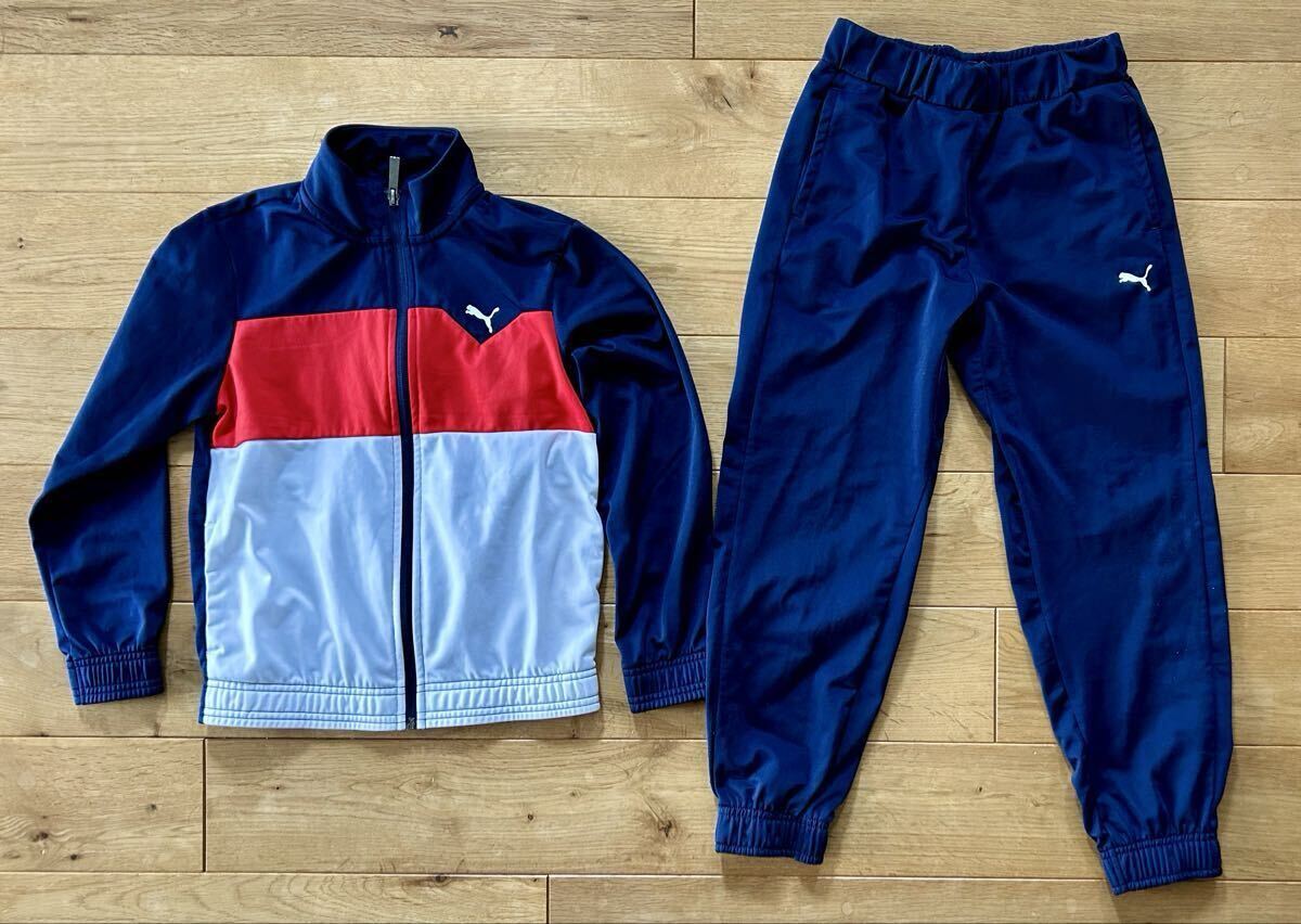 即決 送料無料 PUMA ジュニア ジャージ 上下セット トレーニングスーツ 130cm 古着 ネイビー セットアップ
