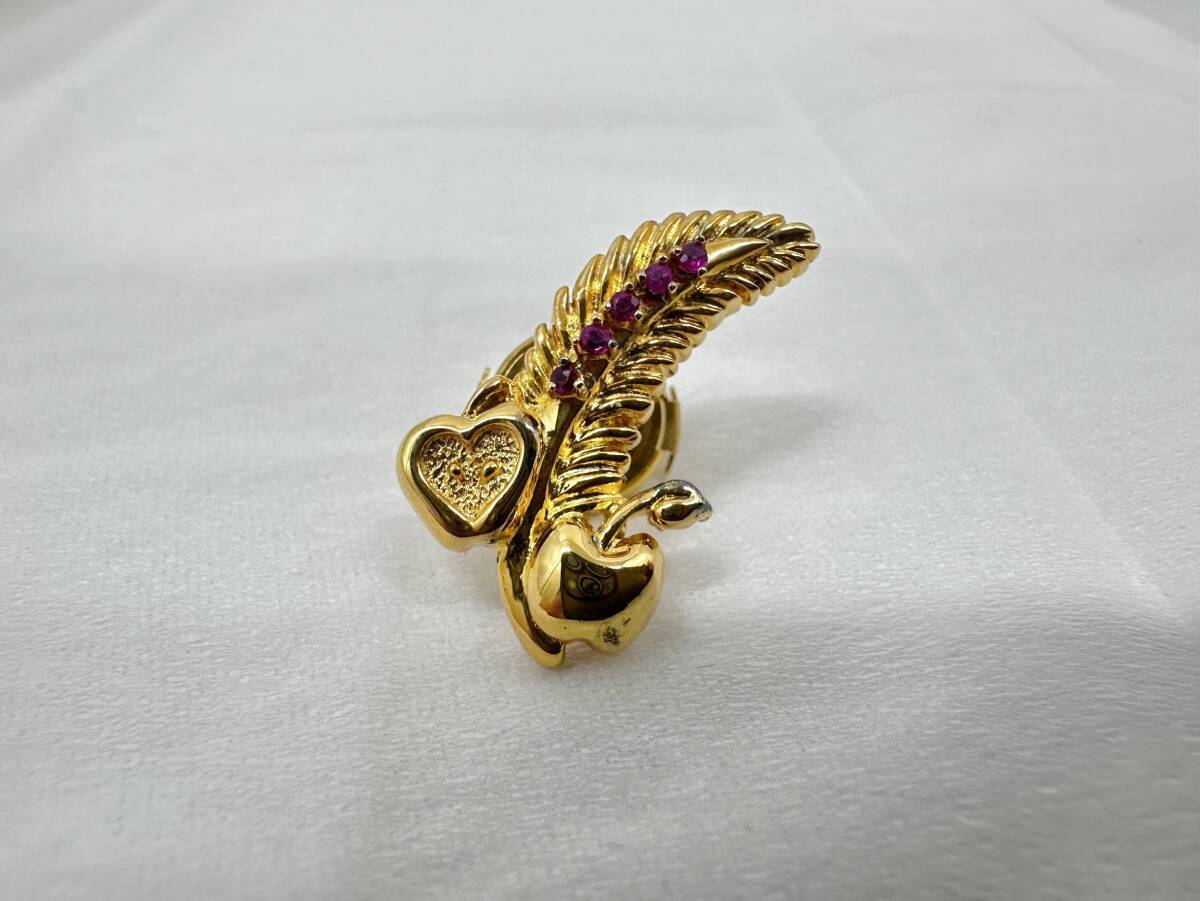 【6654】 LEI 925 刻印 ヴィンテージ シルバー ピン ブローチ アクセサリー ルビー 天然石 装飾品