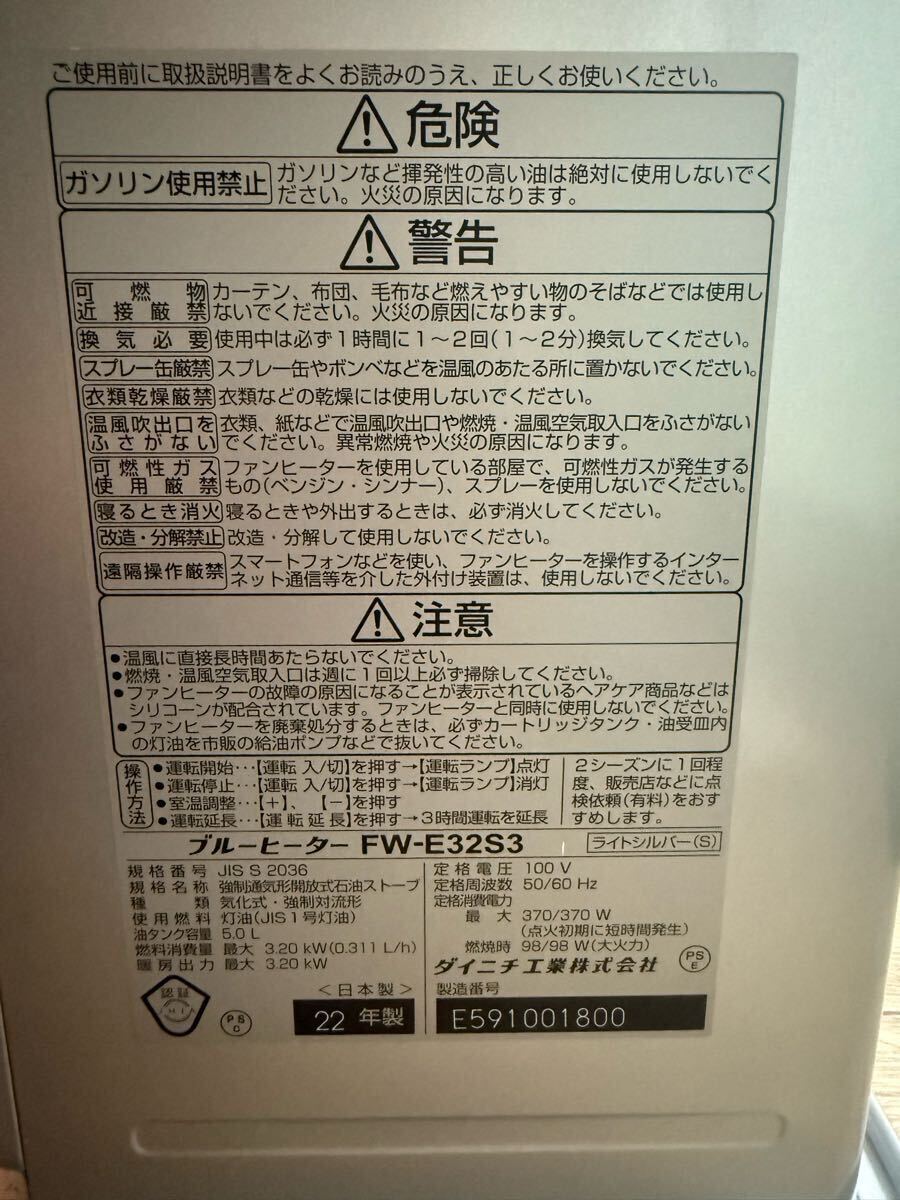 ダイニチ ブルーヒーター FW-E32S3 暖房器具 石油ファンヒーター