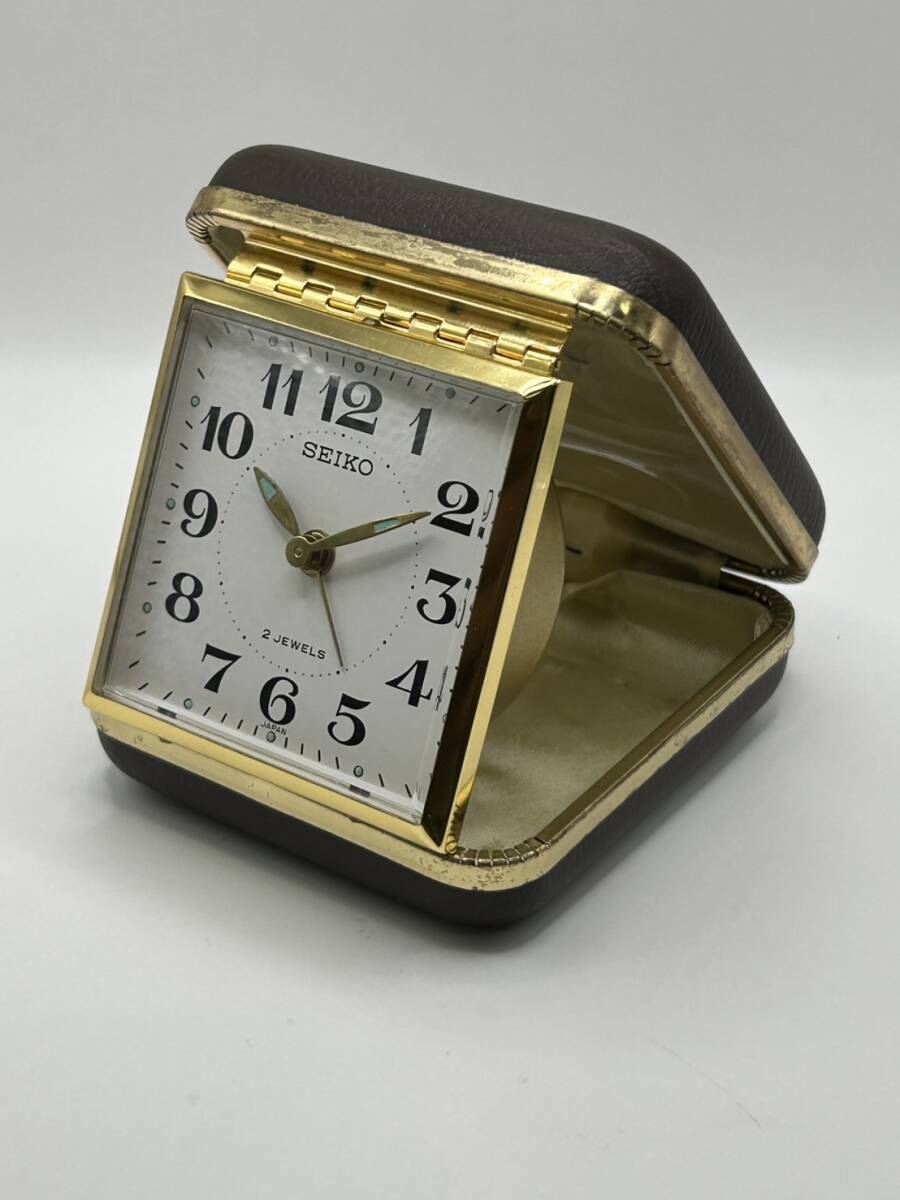 ◎【稼働品】動作確認済 SEIKO セイコー トラベルクロック 手巻き ゼンマイ 旅行 カラー 茶色 ブラウン 持ち運び式