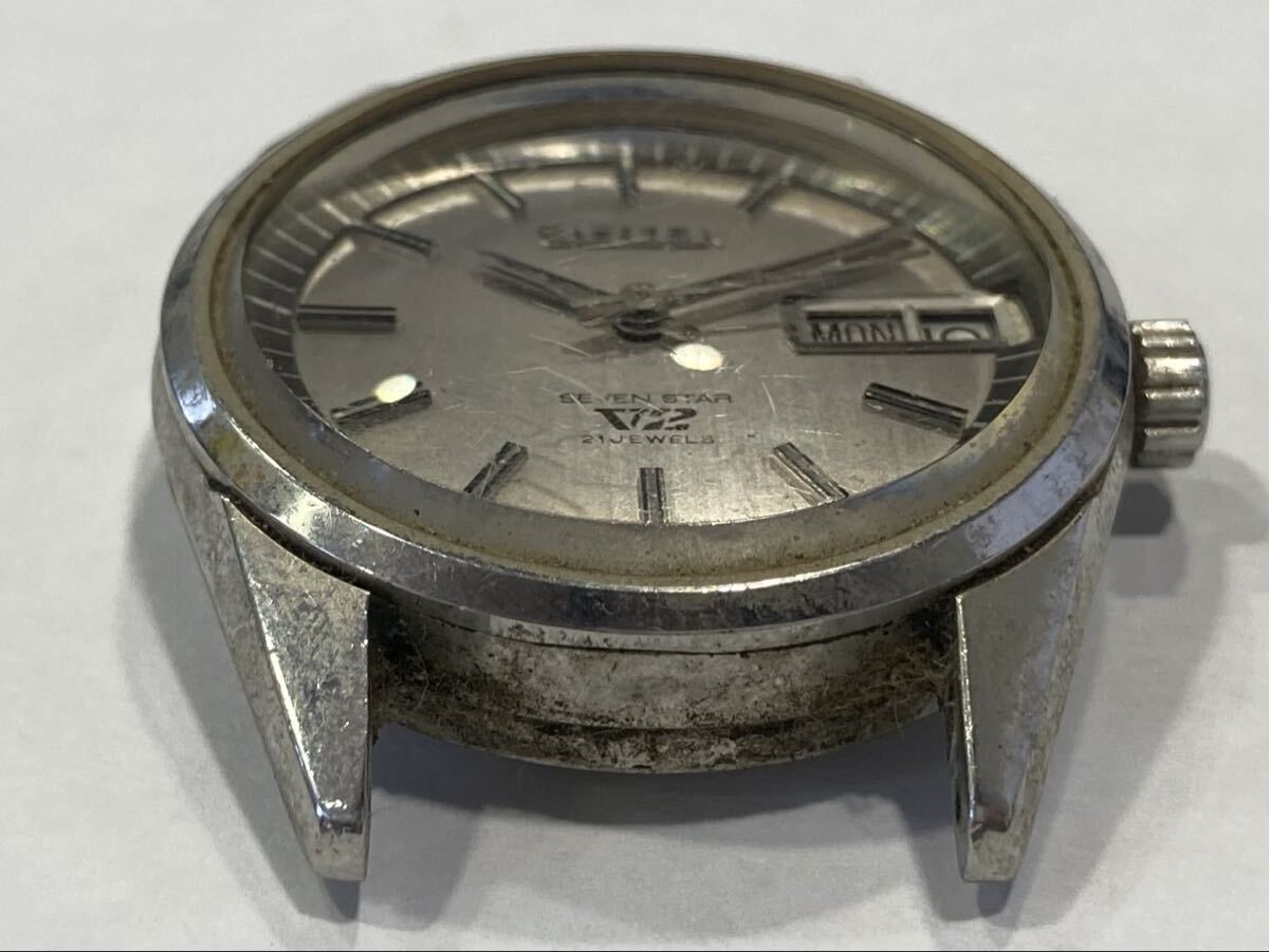 28.1)稼働品 CITIZEN シチズン SEVEN STAR V2 円形 ラウンド 銀 シルバー Silver メンズ 腕時計 3針 デイデイト 自動巻き 4-720687TA