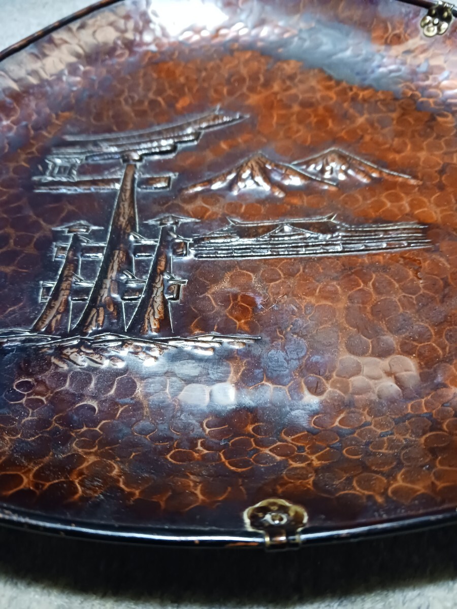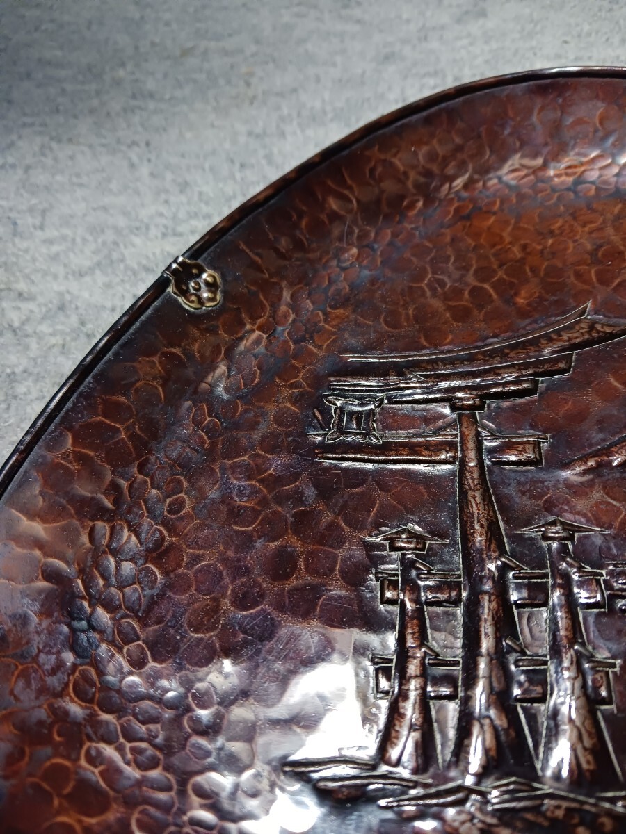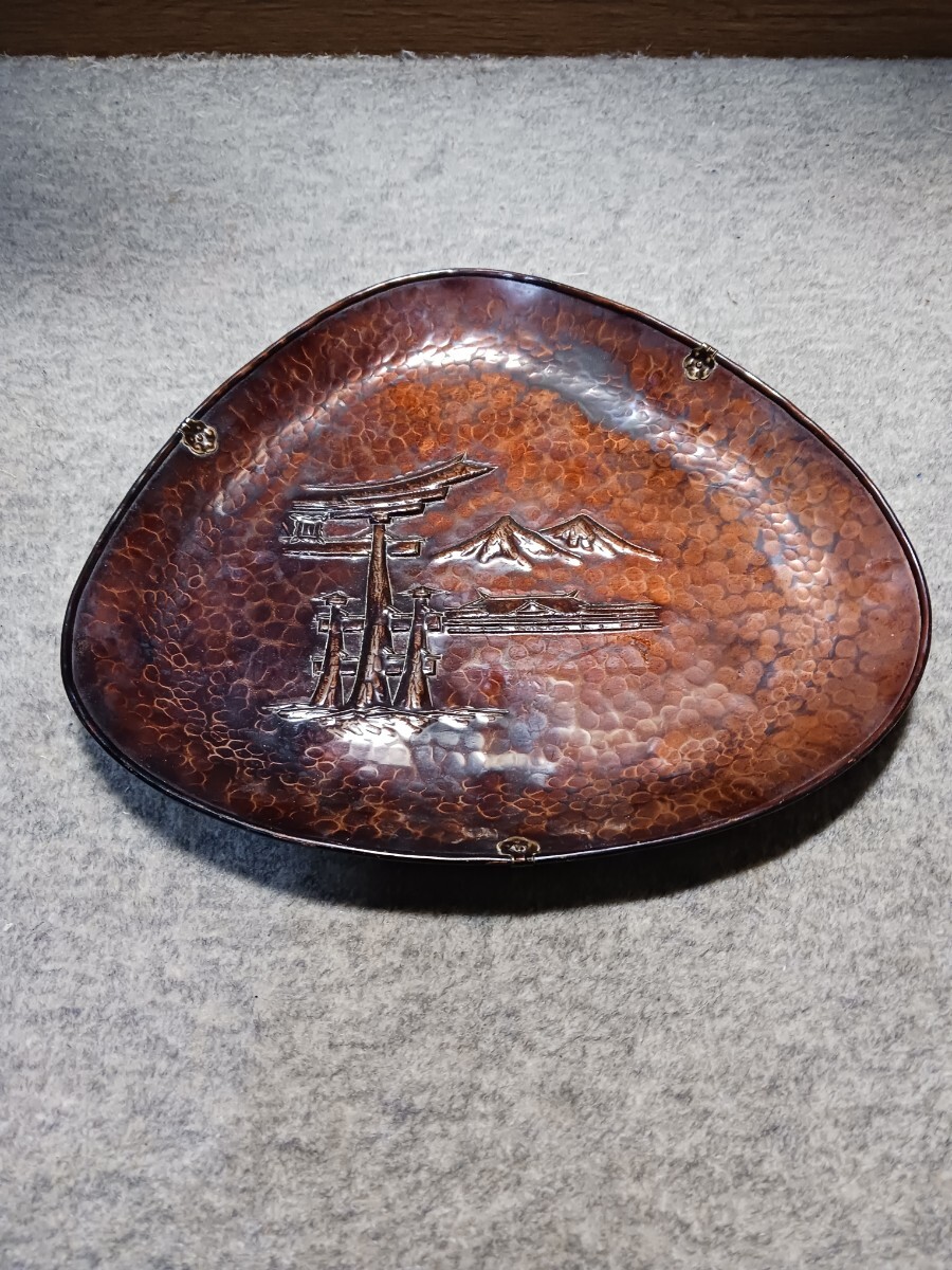 【陽】 モール細工 銅虫 銅蟲 在銘 三つ足 菓子器 茶道具 古銅 アンティーク 菓子皿 時代物 茶器 茶盆 煎茶道具 煎茶盆 茶盆 飾皿 年代物