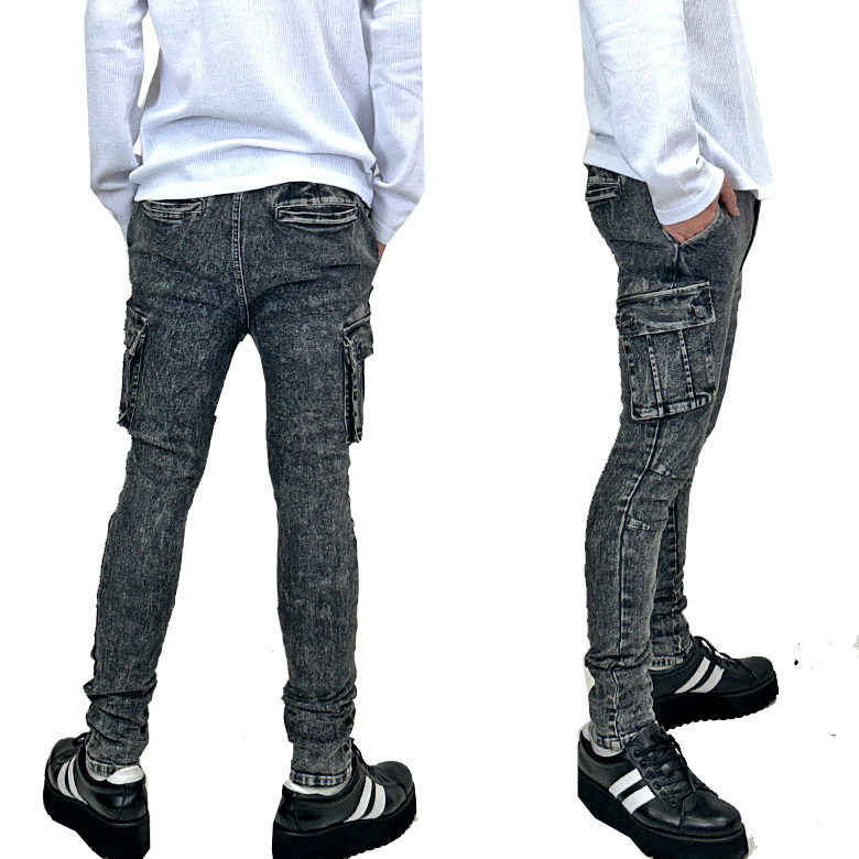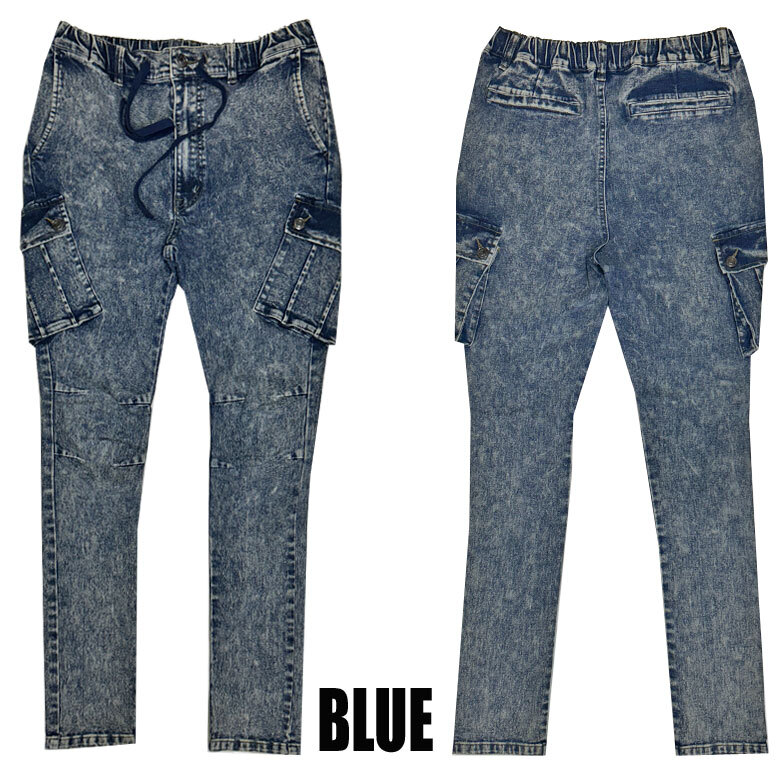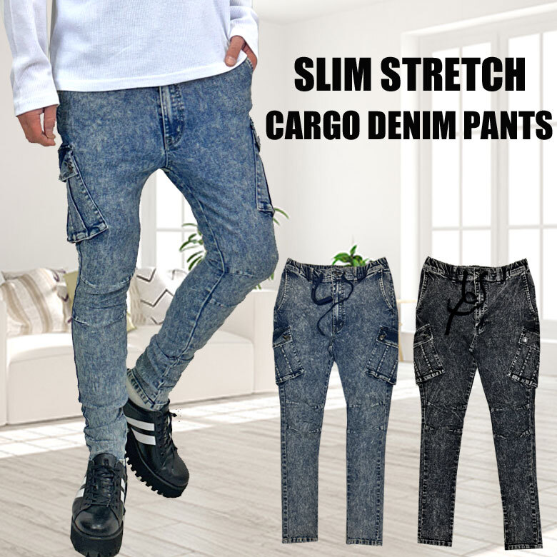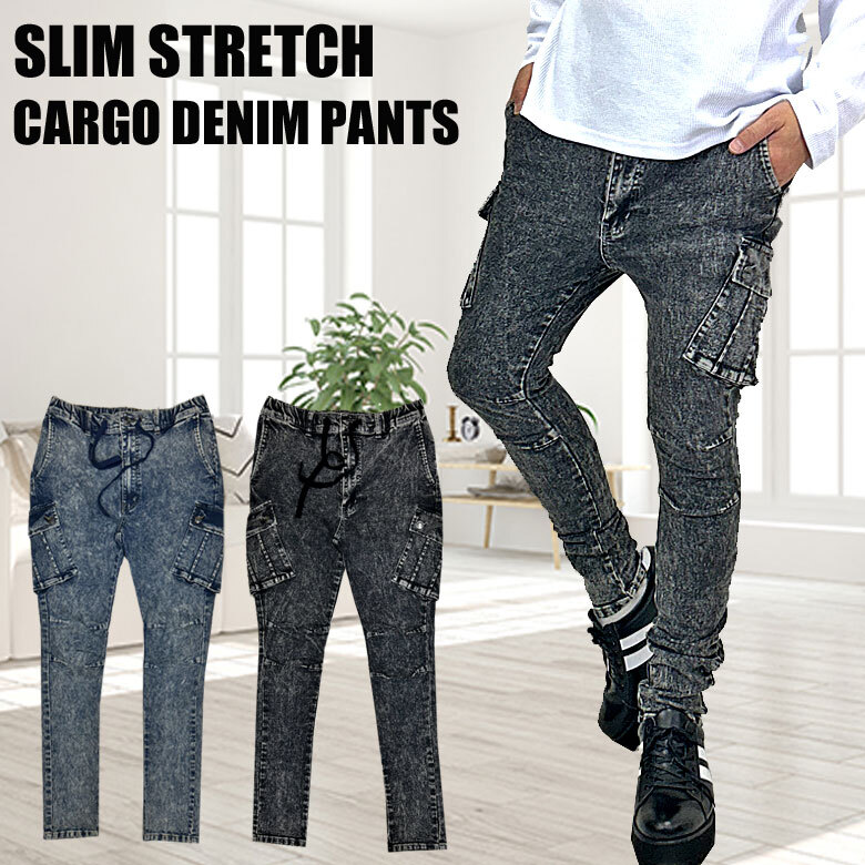 ストレッチ スリム デニムカーゴパンツ 530-42llun 細身 ストレッチデニムパンツ カーゴデニム 新品 ブラック XL