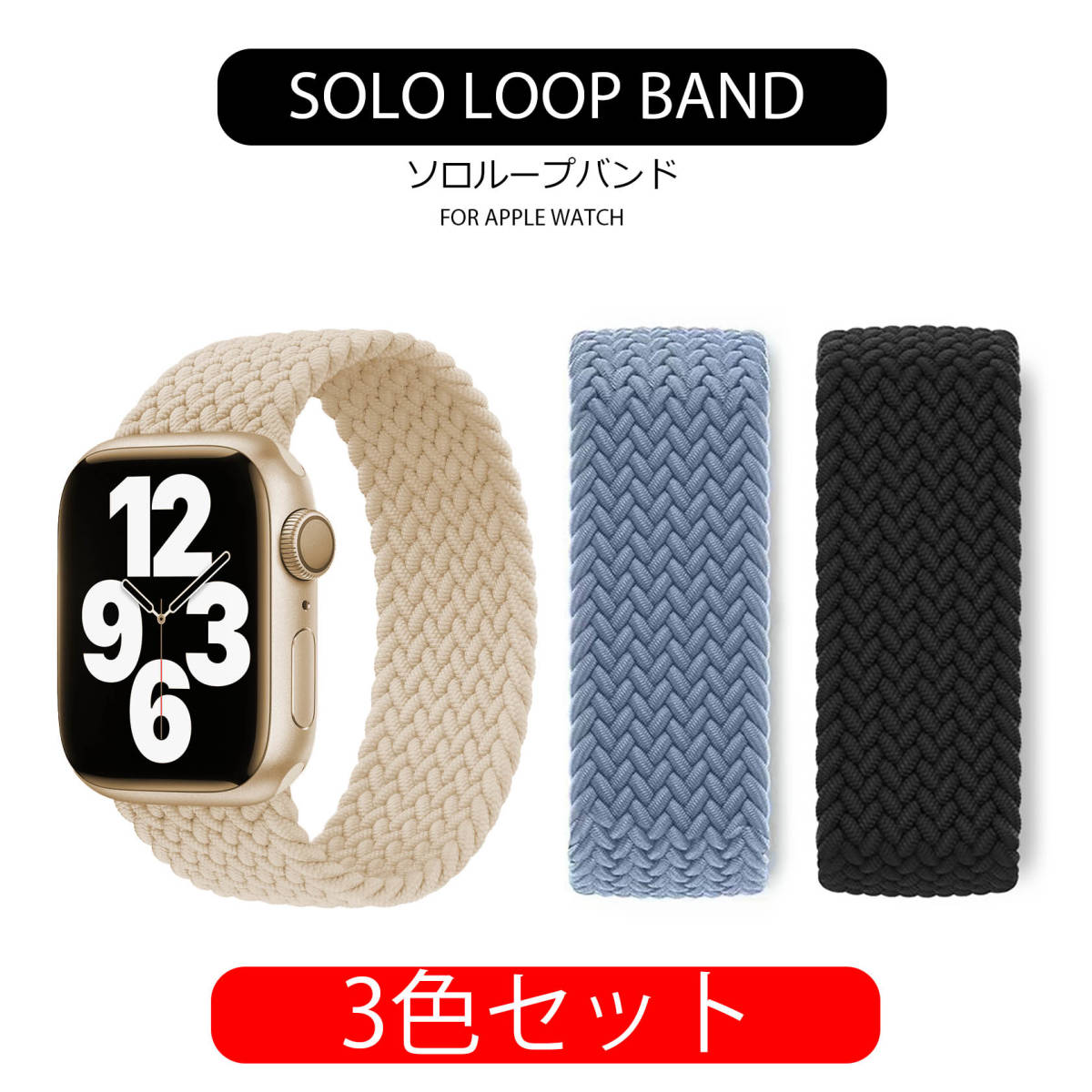 アップルウォッチ バンド 3本セット Watchband ソロループ XS 可愛い SE 8 SE 7 6 5 4 3 2 1 38mm 40mm 41mm ベージュ 黒 青 送料無料 安い