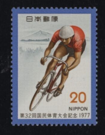 ☆コレクターの出品 第32回国体記念『自転車競技に岩木山』20円 NH美品 L-74