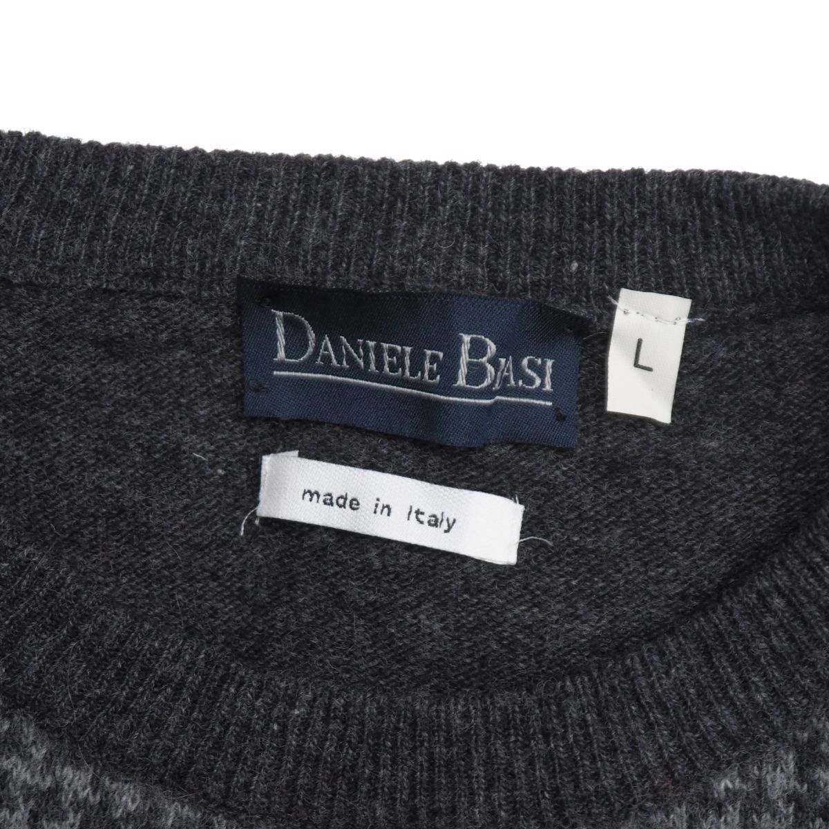 TI8337▽イタリア製 DANIELE BLASI ダニエルブラージ メンズL 千鳥格子柄 ウール クルーネック ニットセーター グレー系