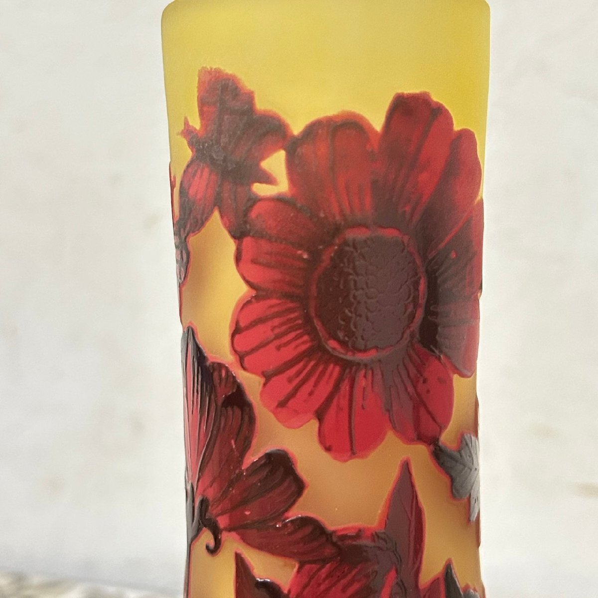 【証明書】 エミールガレ 花瓶 カメオ彫り 被せガラス 高さ19cm FG603