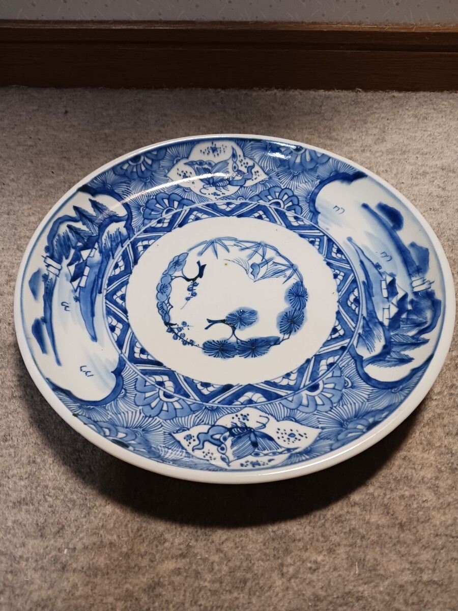 【陽】 古伊万里 染付 大皿 骨董 江戸時代 時代品 うぶ出し品 素朴な品 大鉢