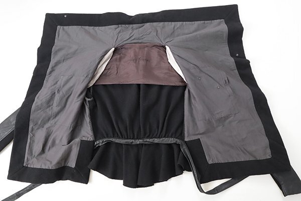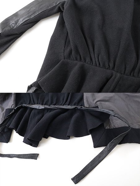 Rick Owens ◆ カシミアウール 切替 レザー ドレープネック ジャケット 紐付き ショートコート 黒 サイズ38 リックオウエンス ◆67/K2G