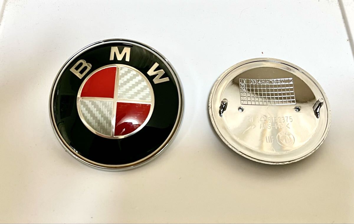 ★BMW★フロント&リア2枚セット★エンブレム★ホワイト×レッド★新品★
