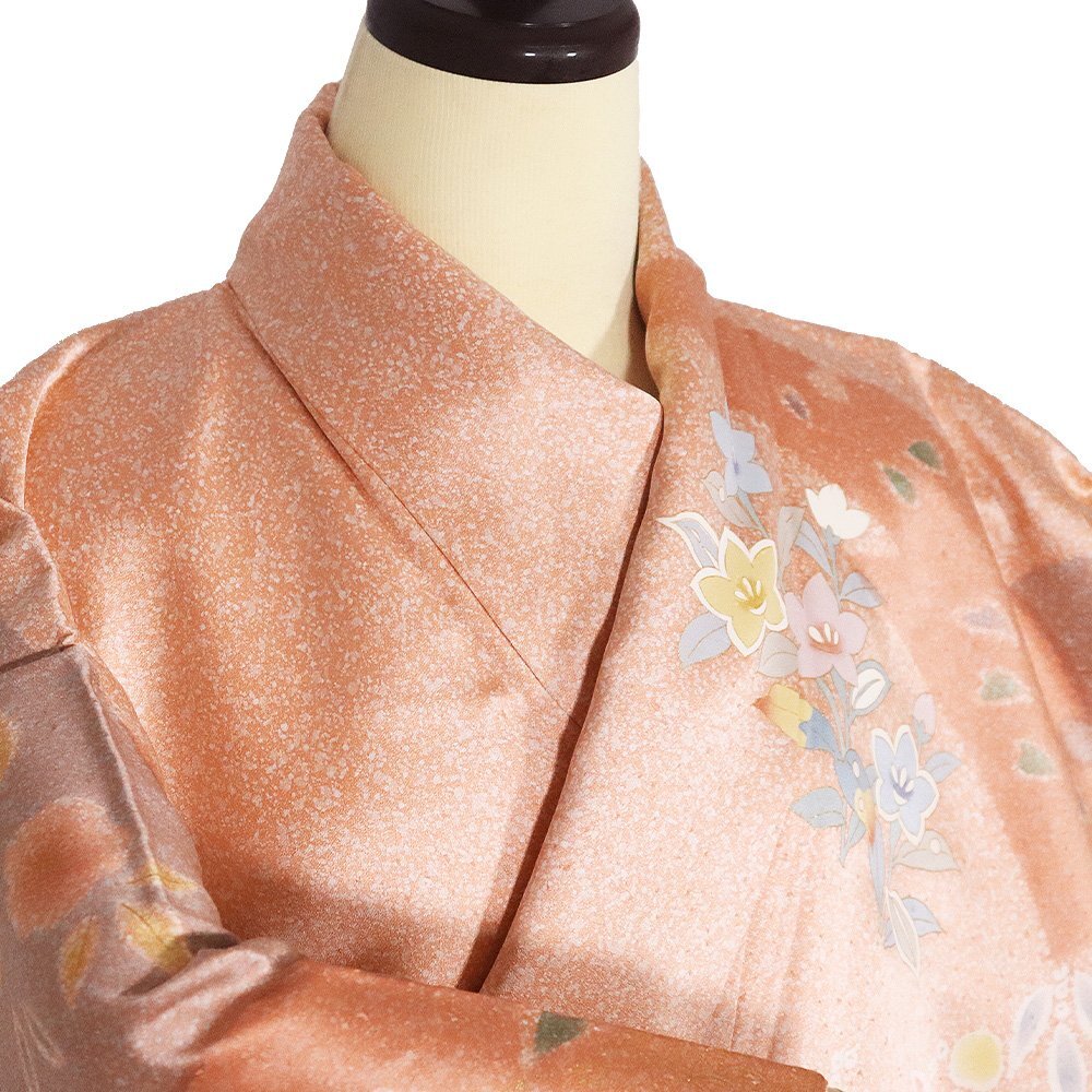 訪問着 袷 正絹 ピンク 赤紫 サーモンピンク グリーン 菊 月下美人 梅 桐 藤 桔梗 Lサイズ ki31209 美品 レディース フォーマル 送料無料