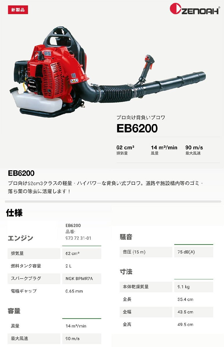 〈ゼノア〉 背負い式ブロワ EB6200 【オススメ】